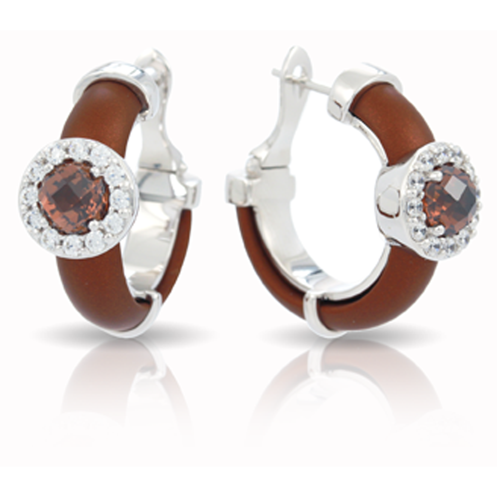 Brun/Kaffe: Håndtrukket brun italiensk gummi med kaffe- og hvite steiner satt i rhodiumbelagt, nikkelfri, 925 sterlingsølv.