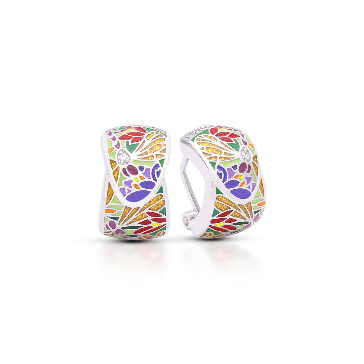Beskrivelse: Håndmalt italiensk emalje med hvite steiner satt i rhodinert, nikkelfri 925 sterling sølv med gjennomsiktige emaljevinger.