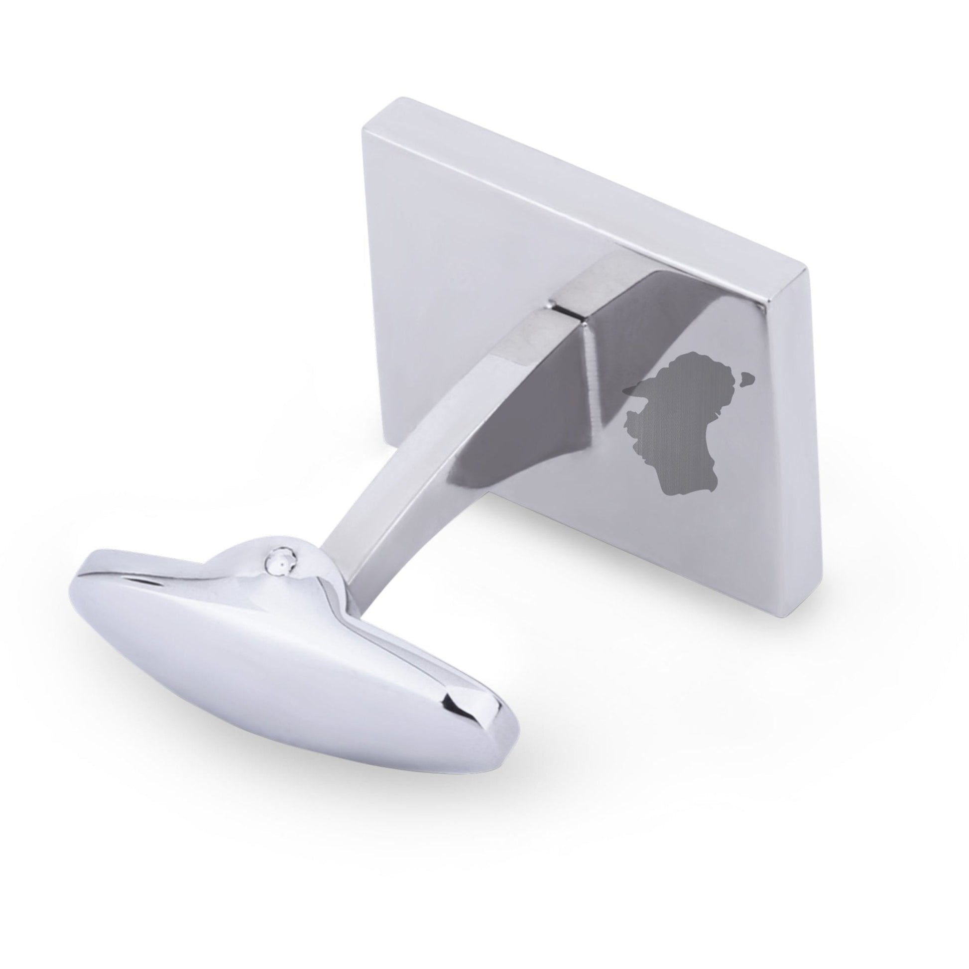 Rektangulære mansjettknapper i rustfritt stål med innlegg av Jarrah-tre. Elegant design med fjærbelastet hvalhale-fot.