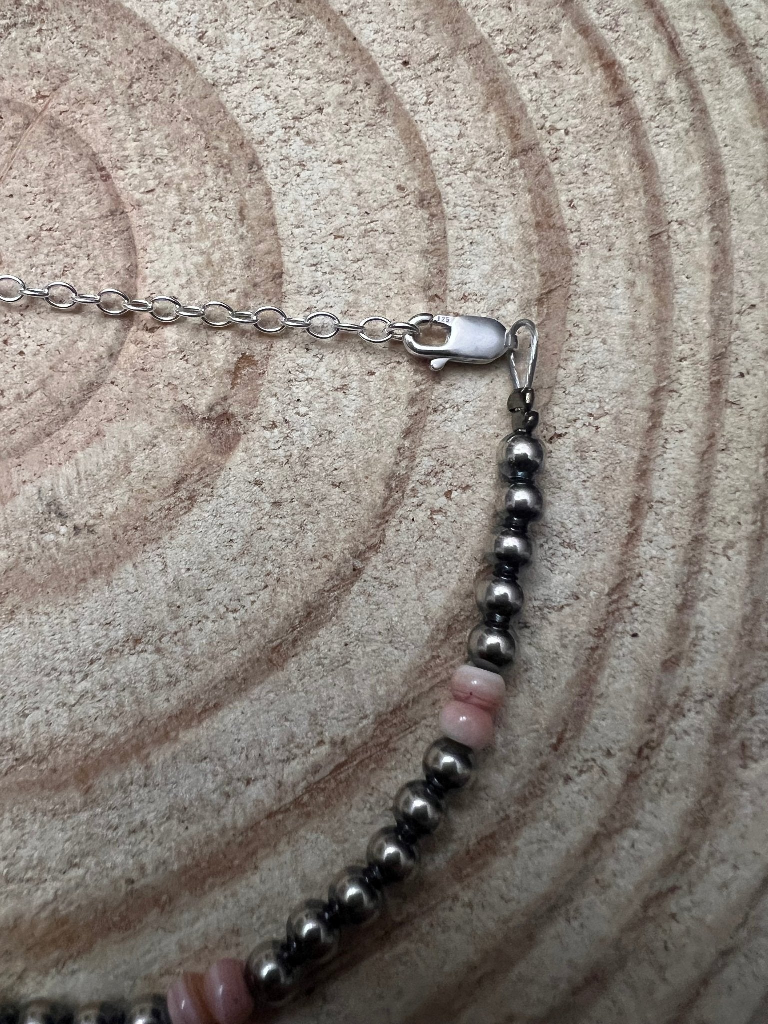 Bransoletka z perłą ze srebra 4mm i różowym konkiem