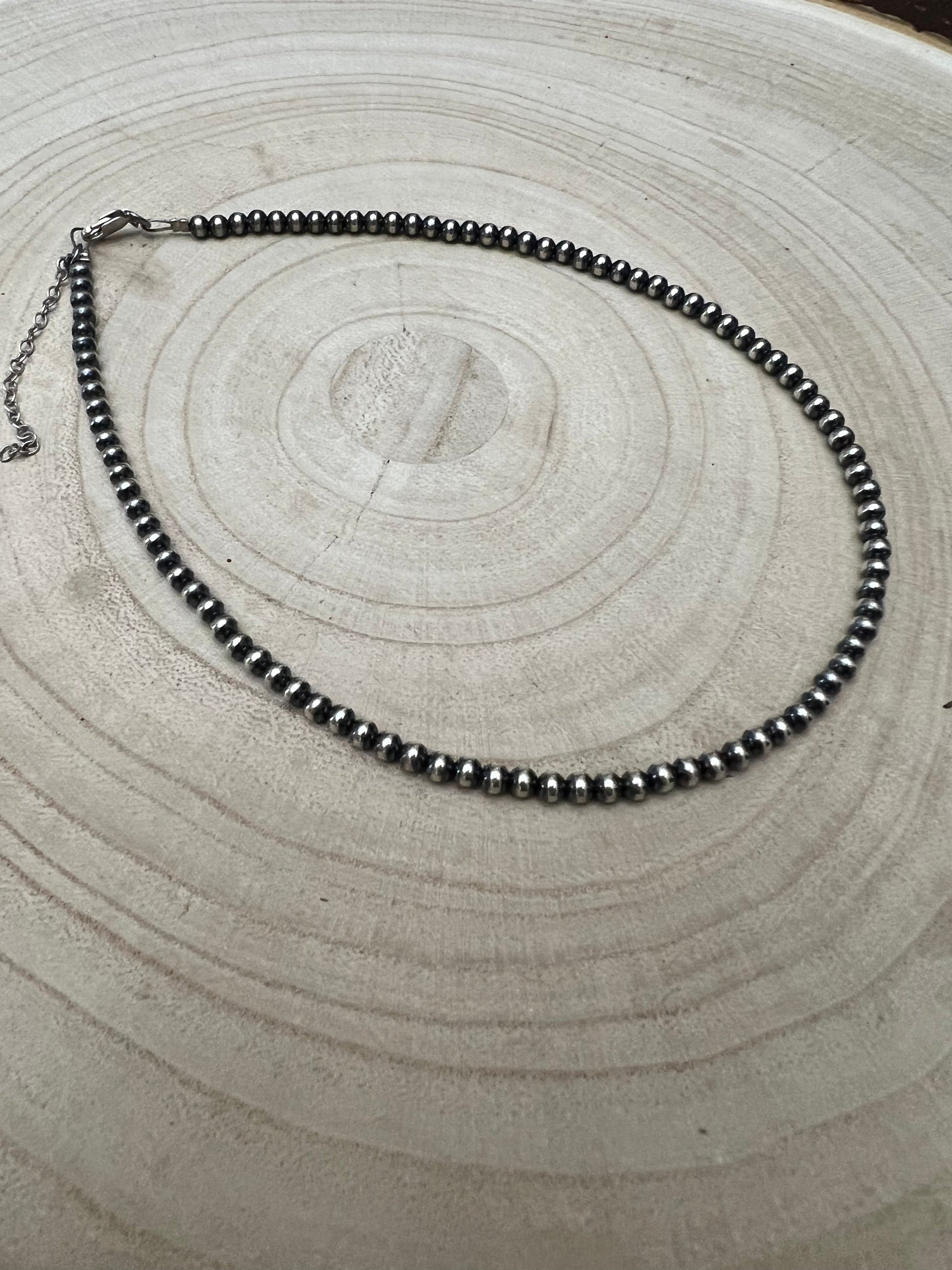 Naszyjnik choker z pereł ze srebra próby 925 o długości 14 cali z 3-calowym łańcuszkiem przedłużającym i zapięciem typu karabińczyk, wykonany z wysokiej jakości pereł srebrnych 4 mm.