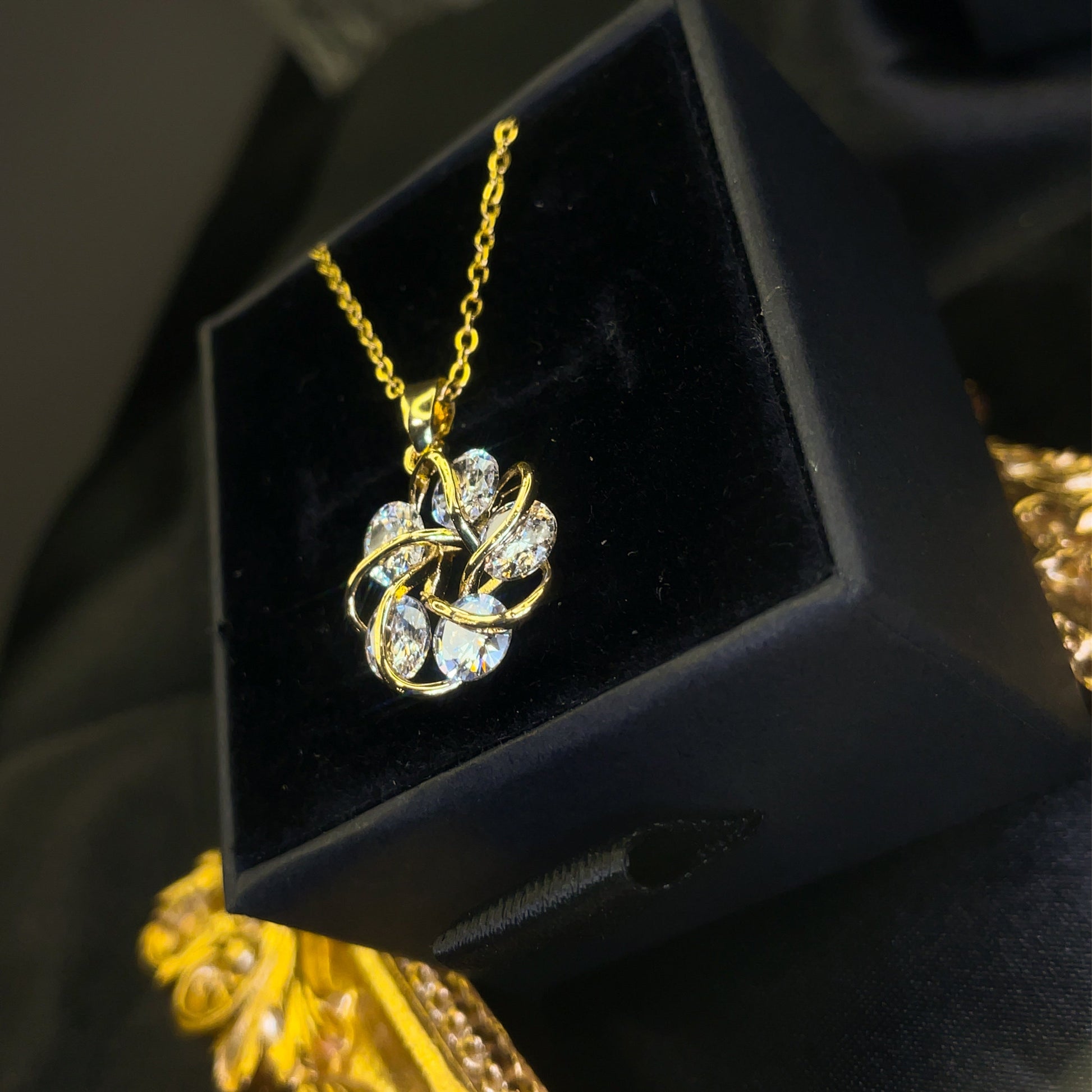 Uroczy, delikatny / minimalistyczny naszyjnik z kwiatowym motywem, idealny do codziennego noszenia. Prosty, elegancki i klasyczny złoty naszyjnik z kryształami, który będzie pasował do Twojego codziennego stroju. Dostarczany w pudełku prezentowym.
