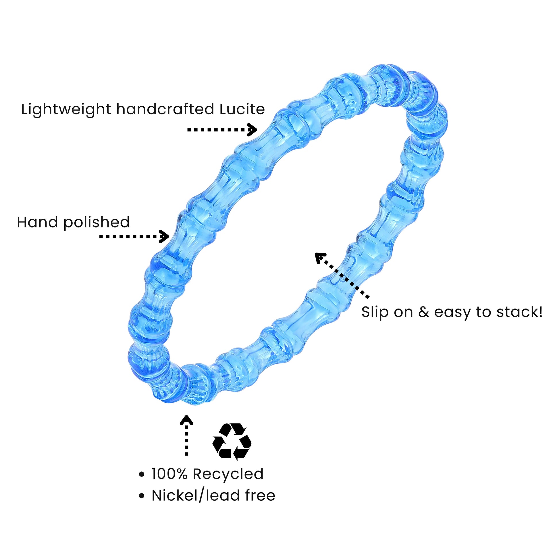 Te bransoletki w stylu bambusowym to zabawny, kolorowy sposób na stworzenie stosu na nadgarstku. Wykonane z przezroczystego lucytu z Twoim ukochanym bambusem, każda bransoletka łapie światło na tyle, by się wyróżniać. Noś jedną jako subtelny akcent lub połącz kilka, aby uzyskać żywy, zabawny wygląd. Dostępne w odważnych, jasnych kolorach i neutralnych tonach, które pasują do każdego nastroju.