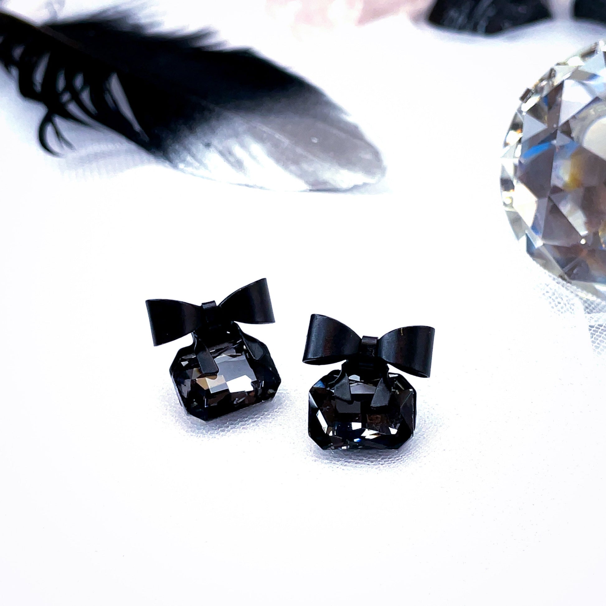 Urocze, delikatne / minimalistyczne czarne kolczyki w kształcie kryształowych pudełek – to idealne kolczyki na co dzień! Są eleganckie, klasyczne, a jednocześnie casualowe i będą pasować do Twojego codziennego stroju.