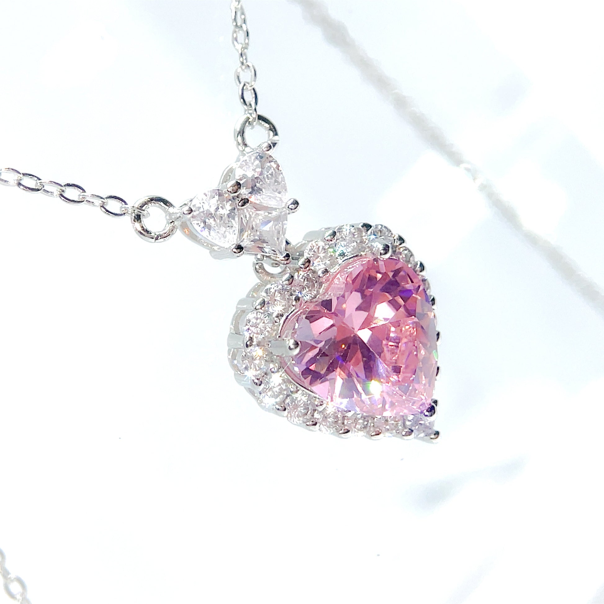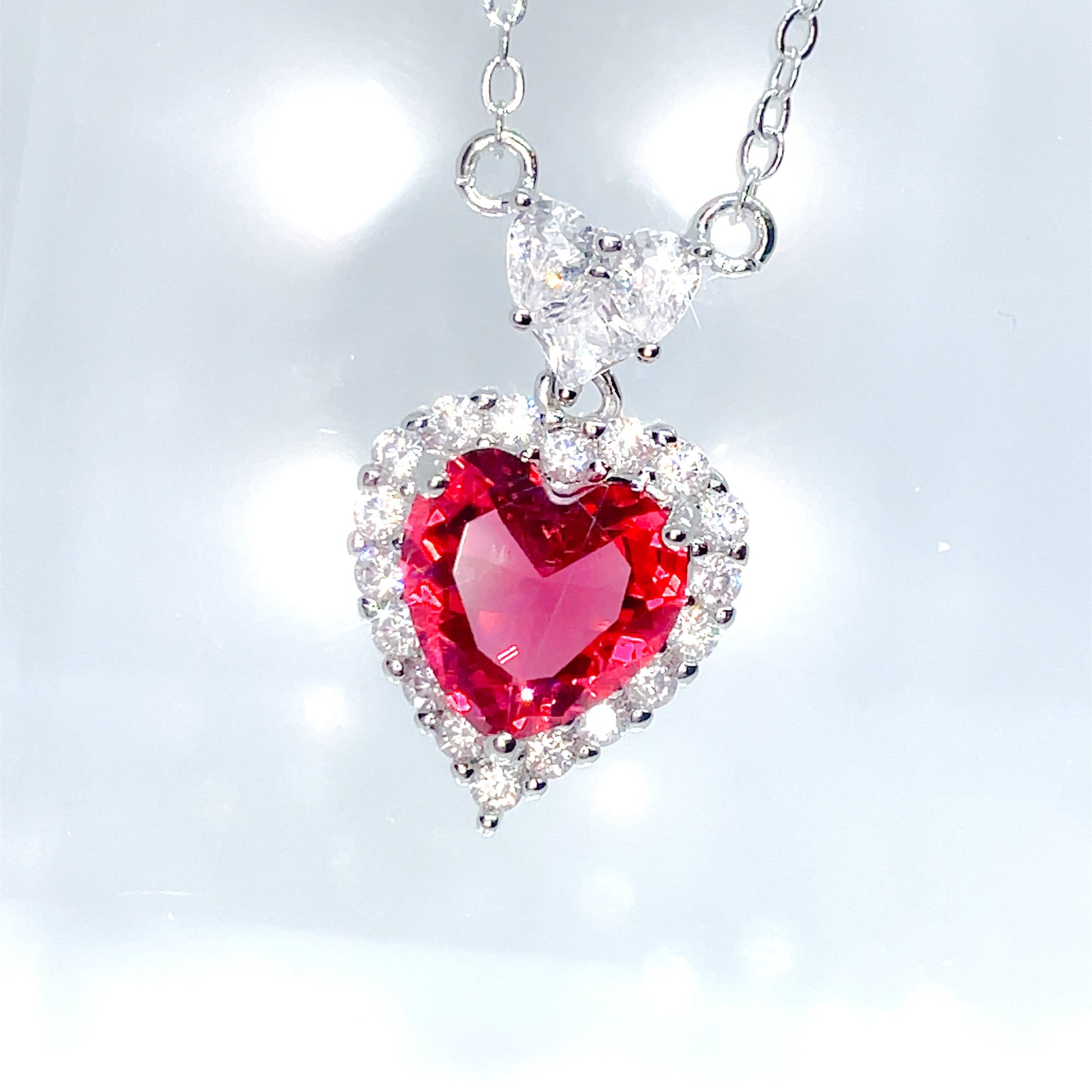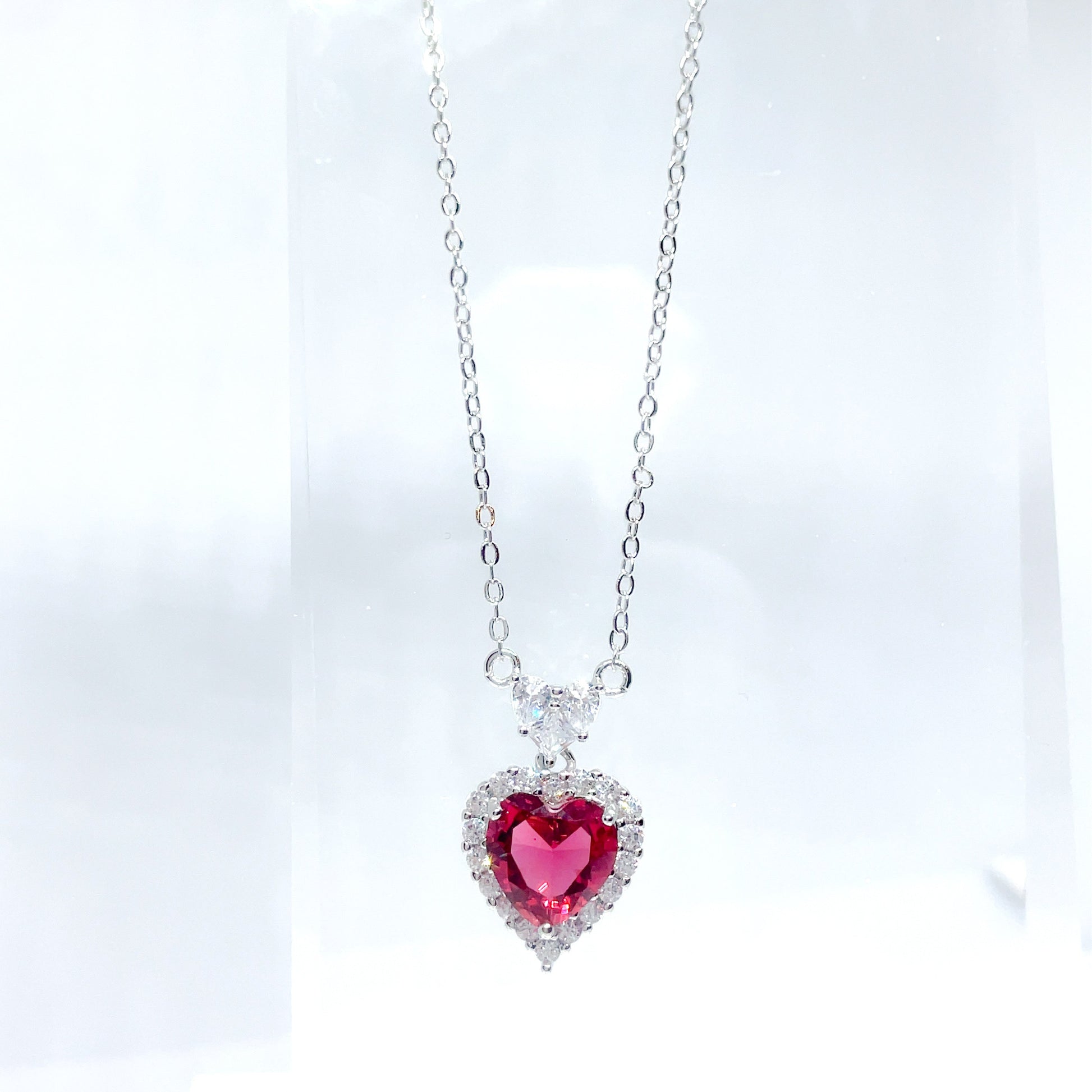 Uroczy naszyjnik z sercem z zawieszką w kształcie serca z aureolą. Delikatny i uroczy - dostępny w czerwonym rubinowym sercu i różowym sercu.