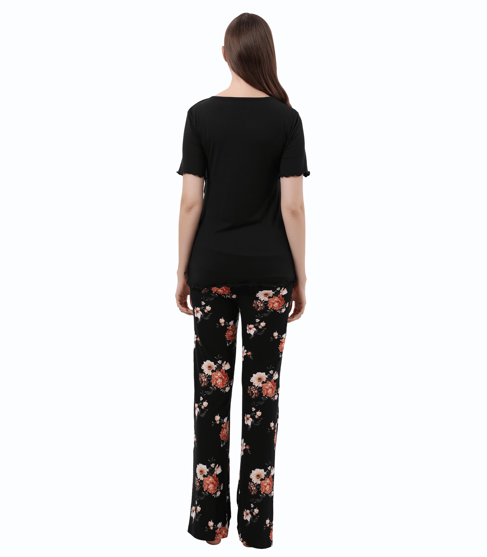 Nasze ulubione spodnie do piżamy w zestawie z pasującą koszulą ciążowo-karmiącą! Ten zestaw oferuje spodnie do piżamy z niskim stanem, które nigdy nie będą uciskać rosnącego brzucha ani przeszkadzać w gojeniu się blizn po cesarskim cięciu. Zawiera także przyjazną dla brzucha koszulę do karmienia, którą można nosić w ciąży i po porodzie. Super miękki materiał, idealny do przytulania się z dzieckiem.