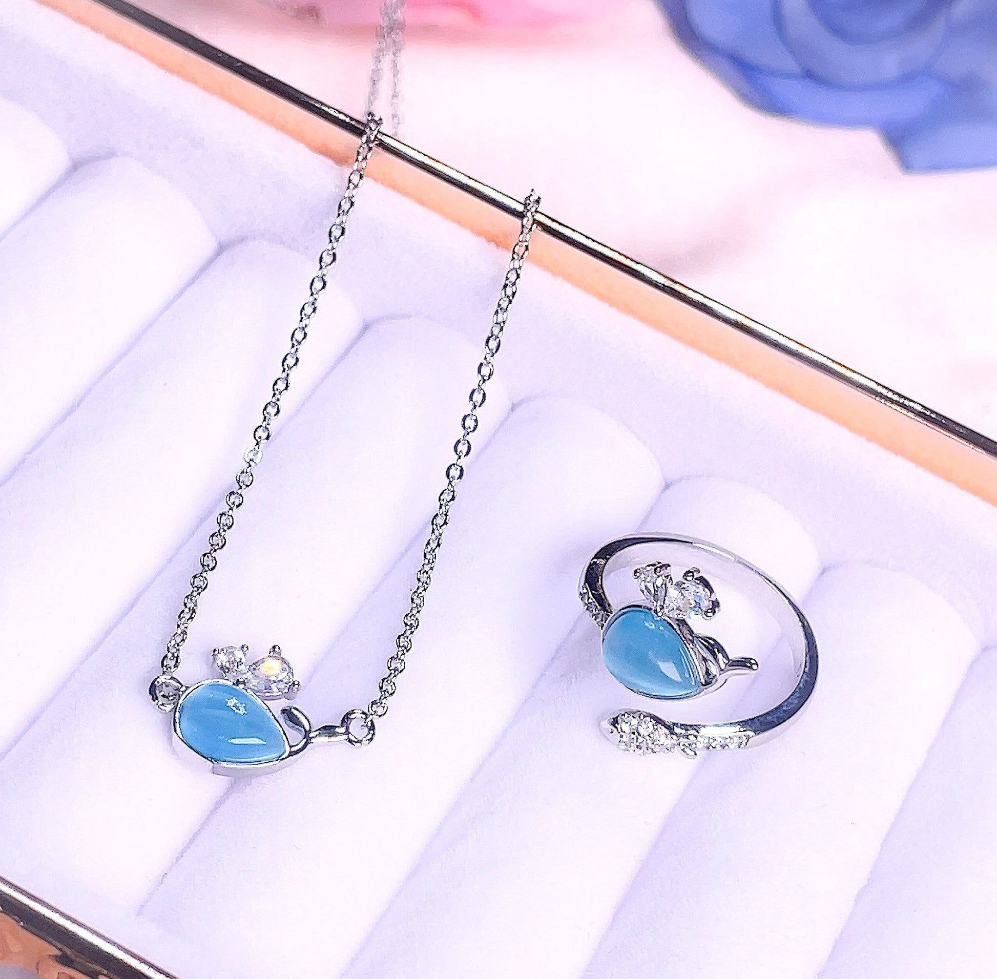 Uroczy, delikatny naszyjnik z delfinem wykonany z opalu. Pasujący pierścionek jest otwarty z regulowanym ogonem ryby! Idealny dla miłośników uroczych zwierząt i doskonały na co dzień! Sprzedawane osobno.