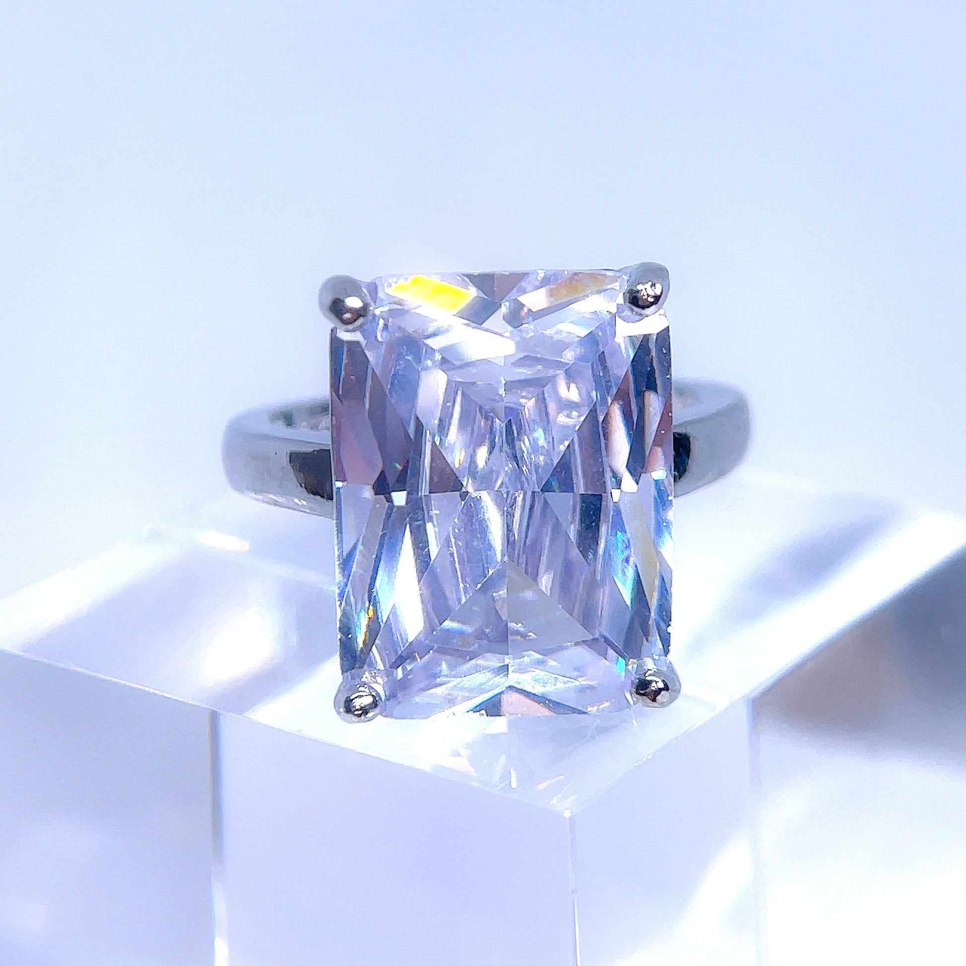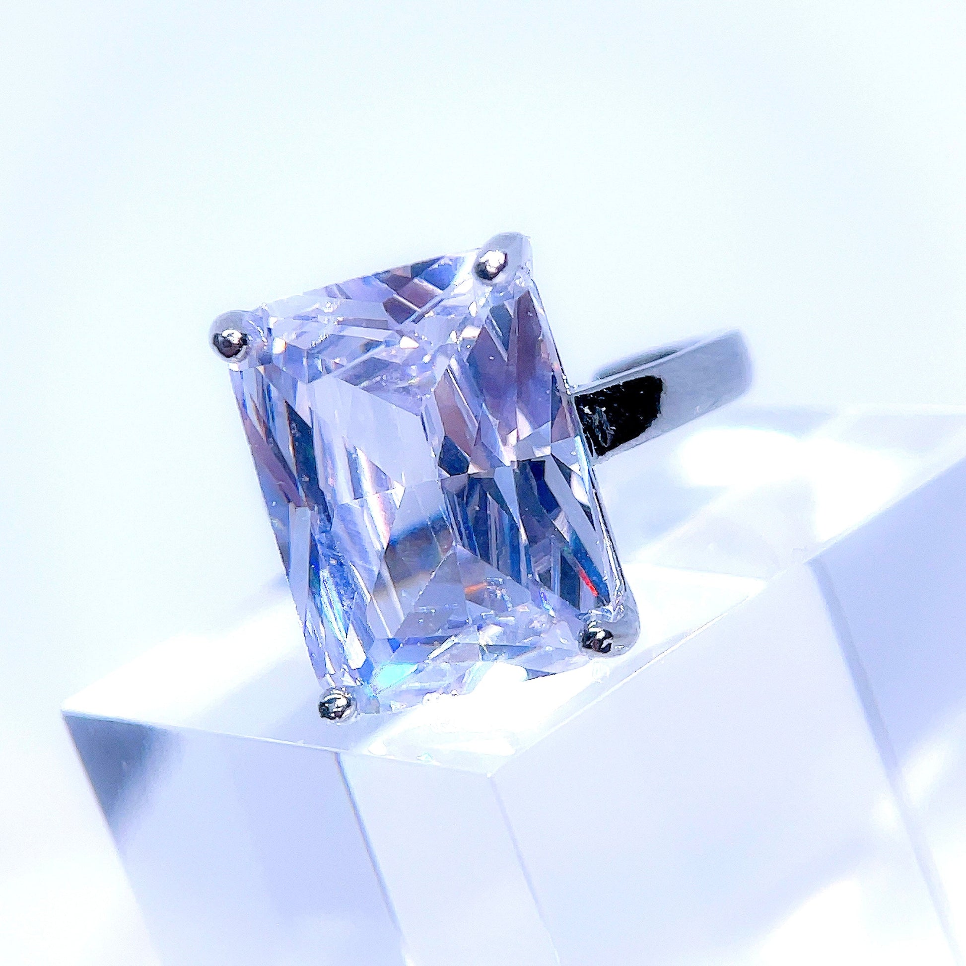 Pierścień Emma to elegancki element wykonany z dużym, błyszczącym kryształem w szlifie księżniczki, osadzonym na prostym, lecz ponadczasowym pierścieniu. Kryształ jest pewnie osadzony w oprawie, oferując odważny, a zarazem gustowny blask. Idealny na specjalne okazje lub codzienne noszenie.
