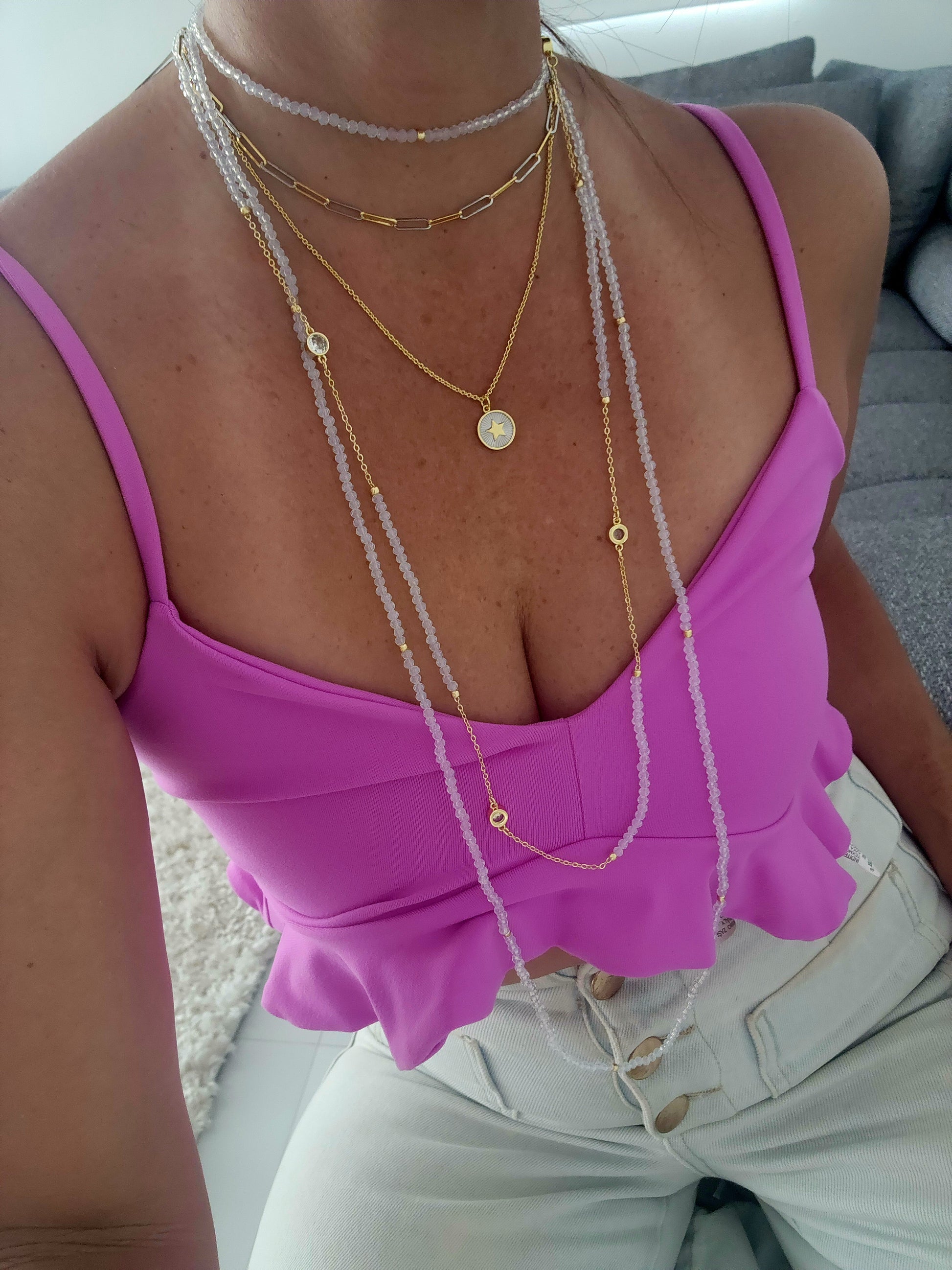 Unleash your inner fashionista with the versatile Farrah Long Necklace! Measuring 48" in length, this stunning piece features sparkling Austrian crystals and can be worn in multiple ways. Made with 15k gold-filled hypoallergenic materials, it's both stylish and gentle on sensitive skin. Elevate any outfit with this must-have accessory.