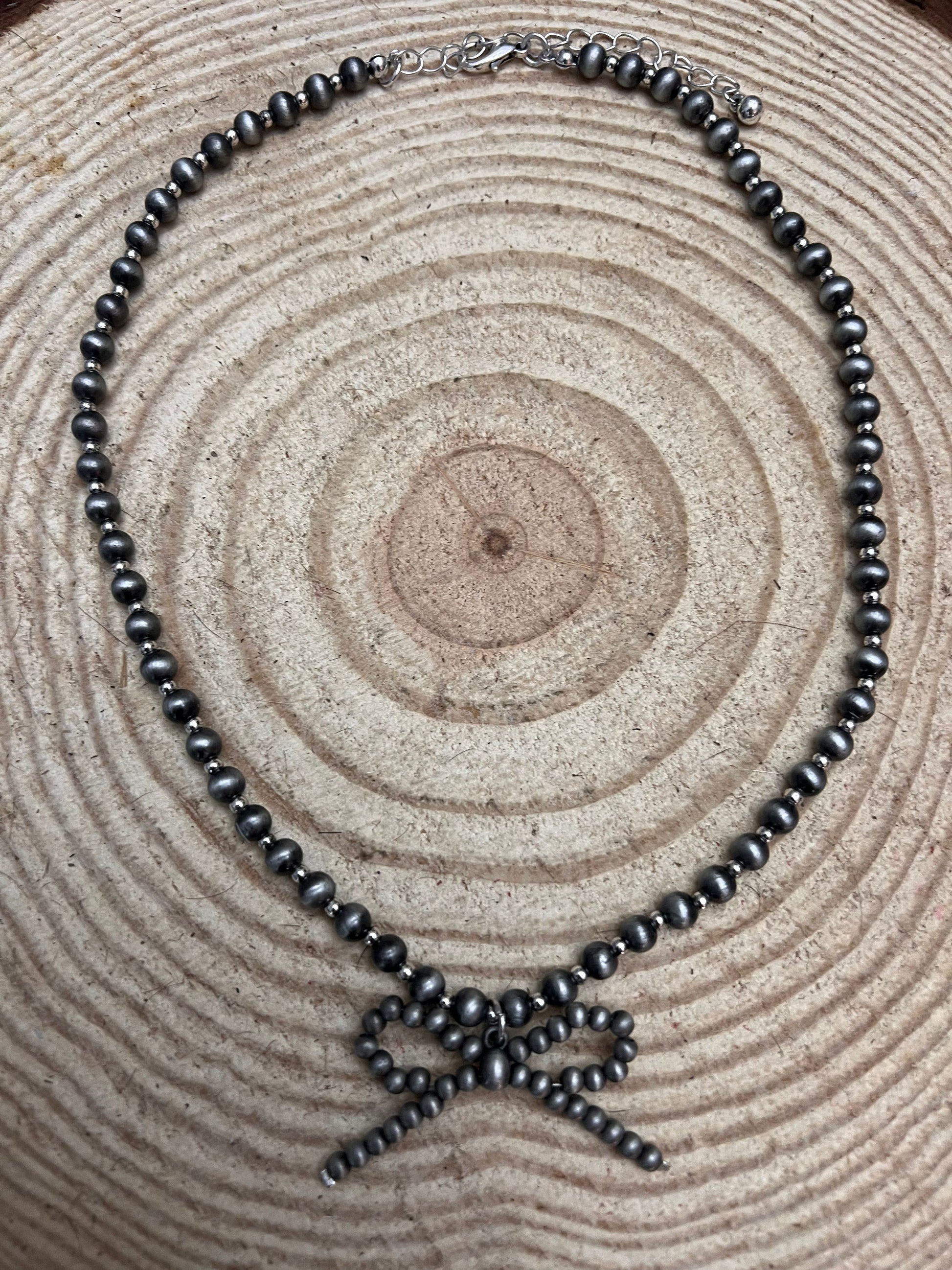 Naszyjnik z sztuczną kokardą z sztucznymi perłami 5 mm - 18 cali