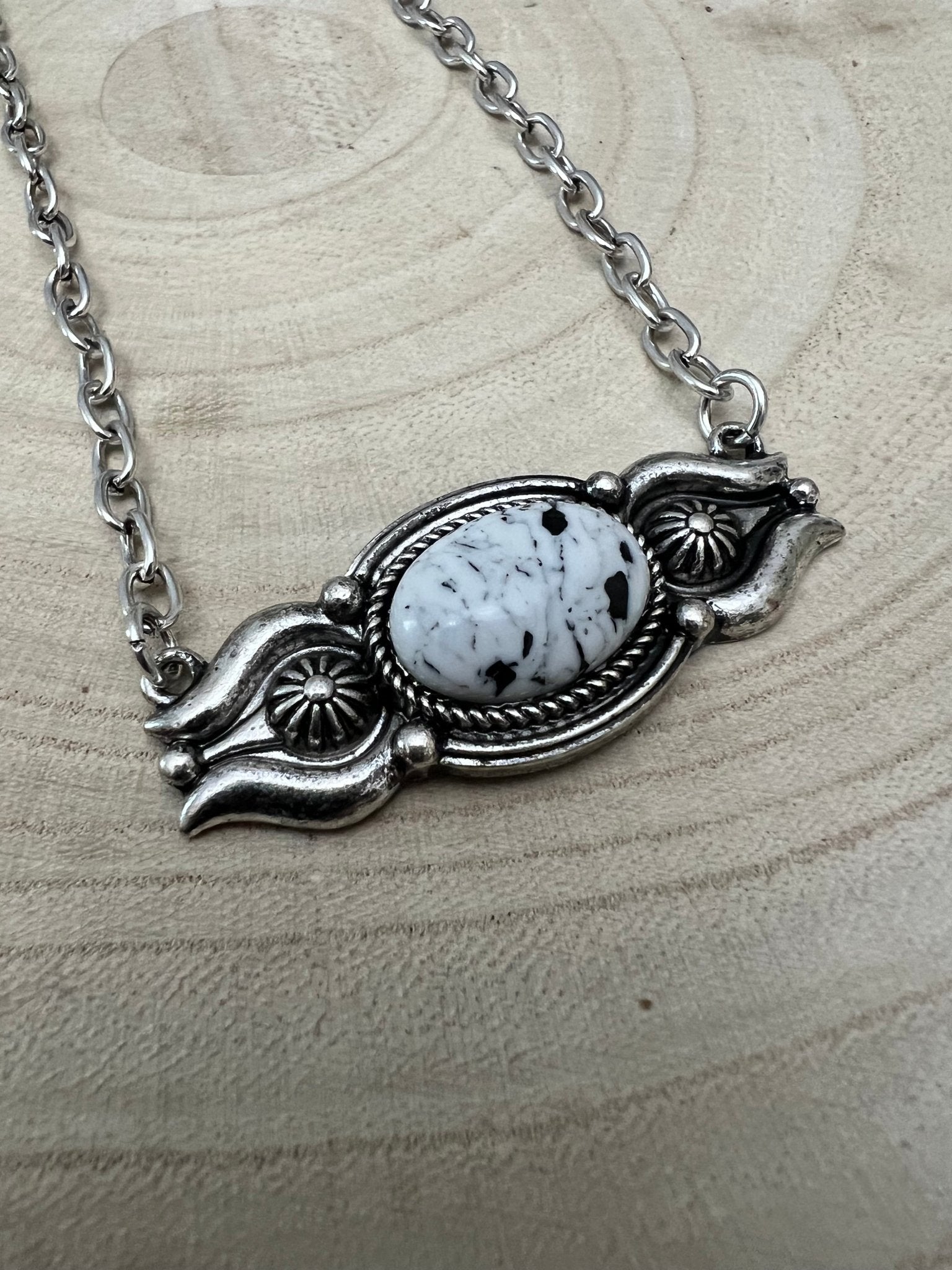 Podkreśl swój zachodni styl dzięki temu naszyjnikowi z sztucznego białego pręta bizona, wyposażonemu w łańcuszek o długości 18 cali z dodatkowym przedłużeniem 3 cali dla idealnego dopasowania. Wykonany tak, aby naśladować uderzający wygląd kamienia białego bizona, ten naszyjnik dodaje odważnego, rustykalnego akcentu każdej stylizacji.