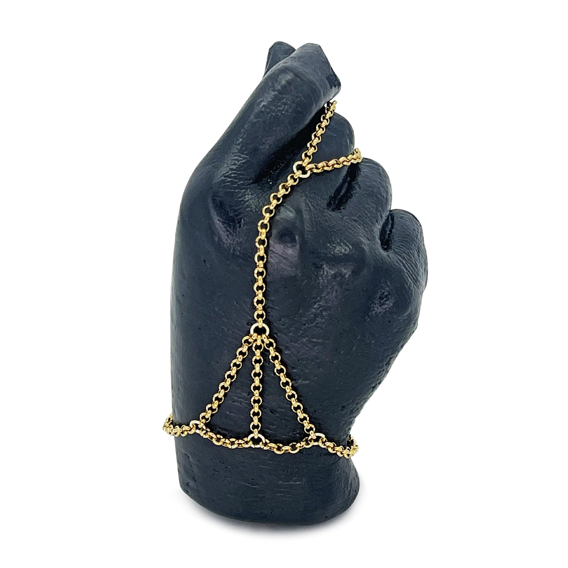 Ręcznie wykonany z mosiądzu pozłacanego 14k złotem, ten lekki łańcuszek na rękę dodaje wyrafinowanego, eleganckiego akcentu Twojemu codziennemu wyglądowi.