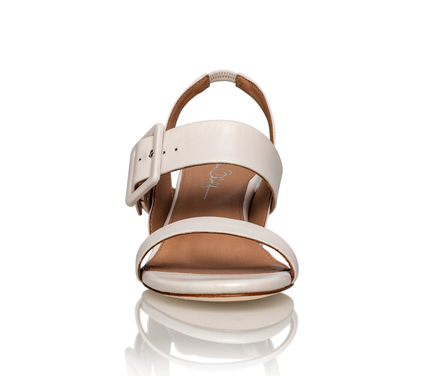- Typ: sandał z odkrytymi palcami, średni obcas