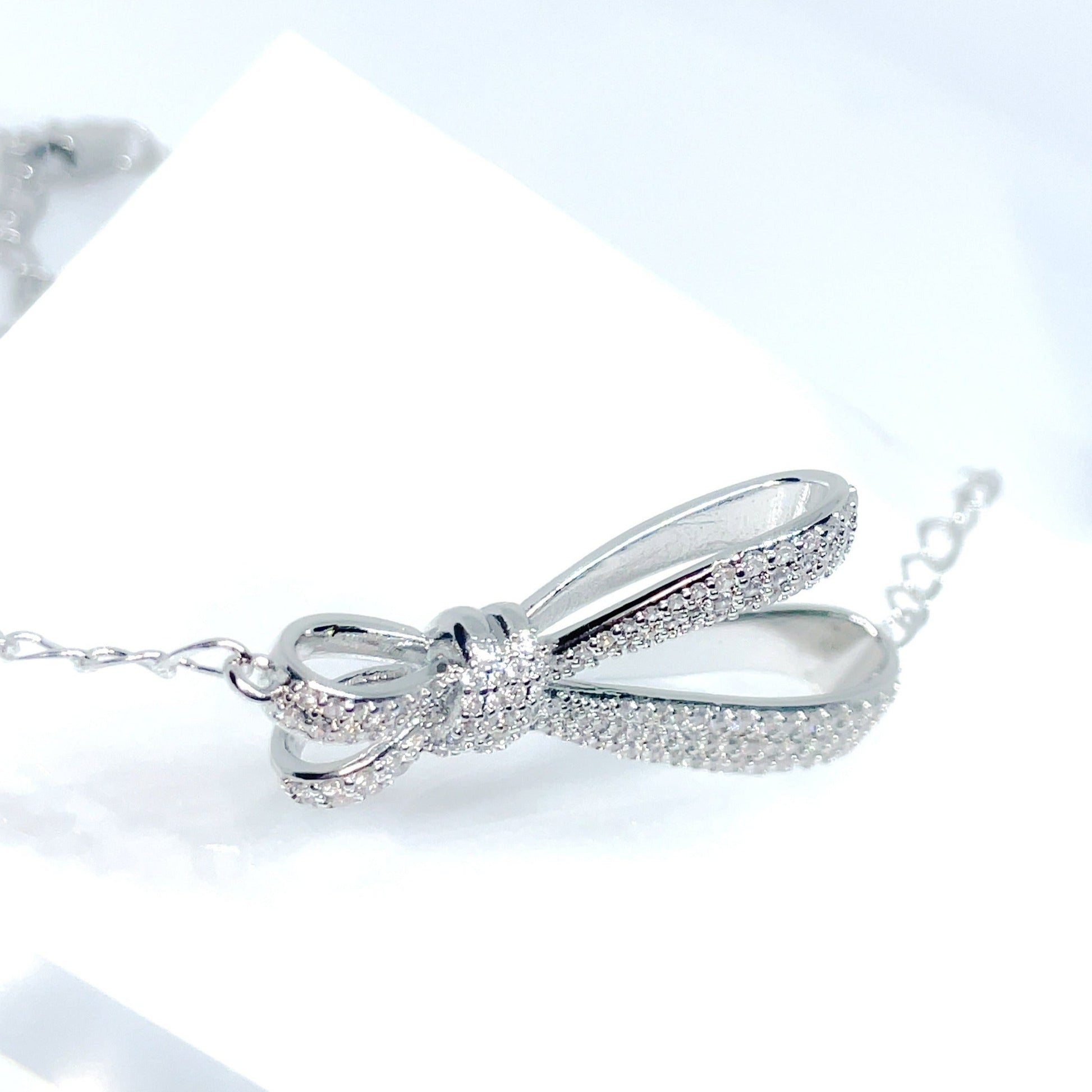 Elegancki naszyjnik typu choker z kryształową srebrną kokardą. Doskonale pasuje do codziennego stroju. Dostarczany z pudełkiem na prezent.