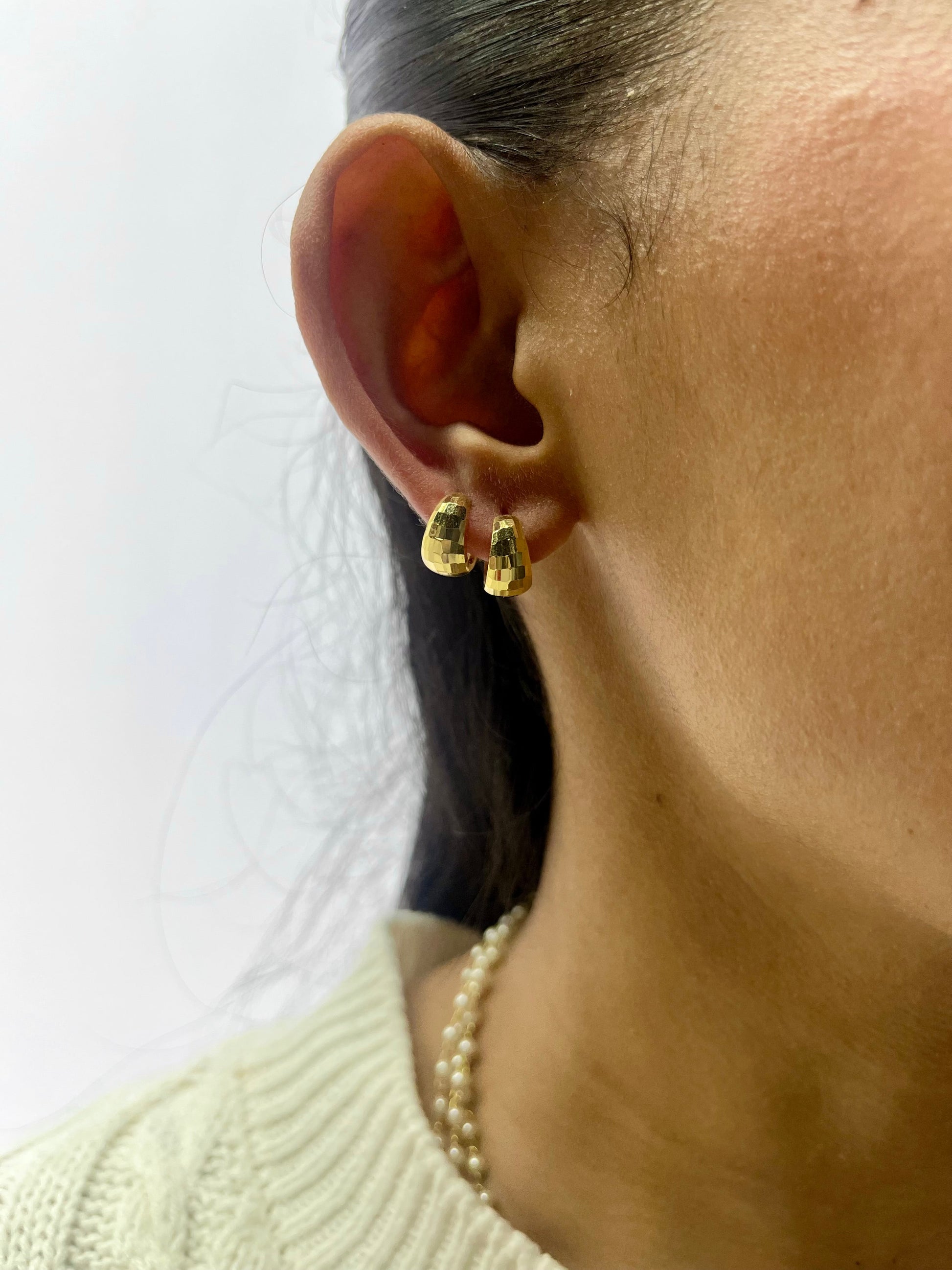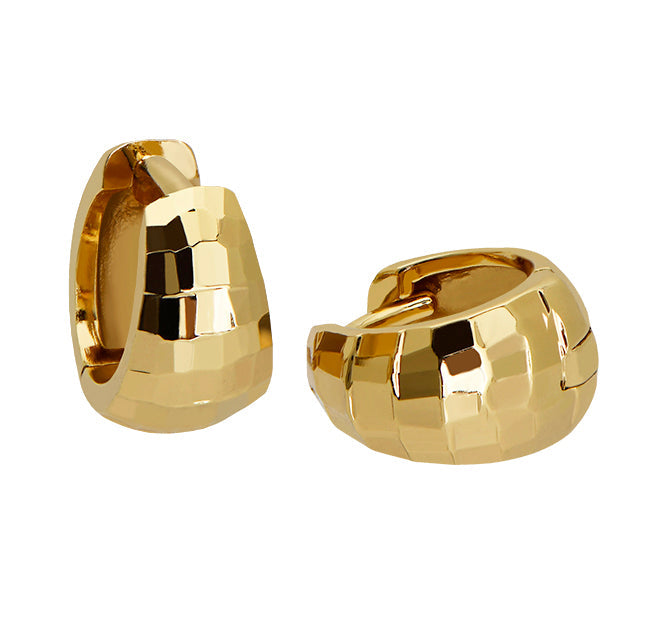 Indulge in luxury with our 11MM HESIE HUGGIE earrings. Crafted with hypoallergenic 925 silver and dipped in 18k gold, these huggies offer a delicate and sophisticated touch to elevate any outfit. The unique texture adds dimension and visual interest for a truly exclusive look.