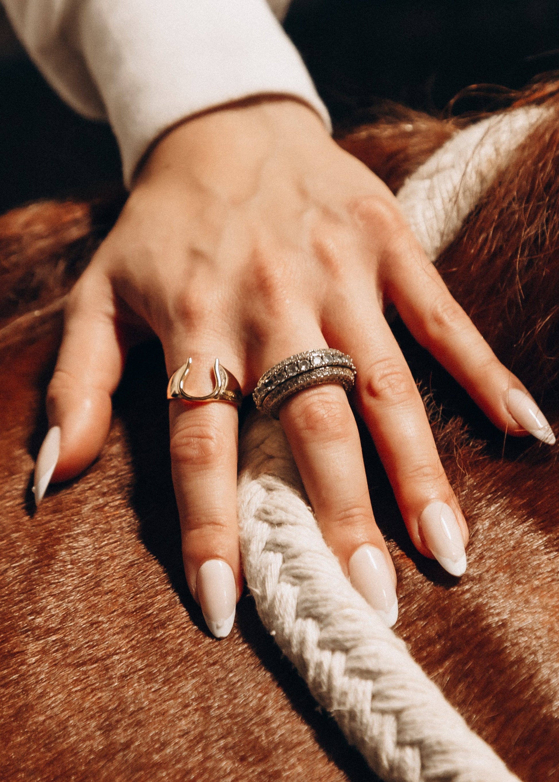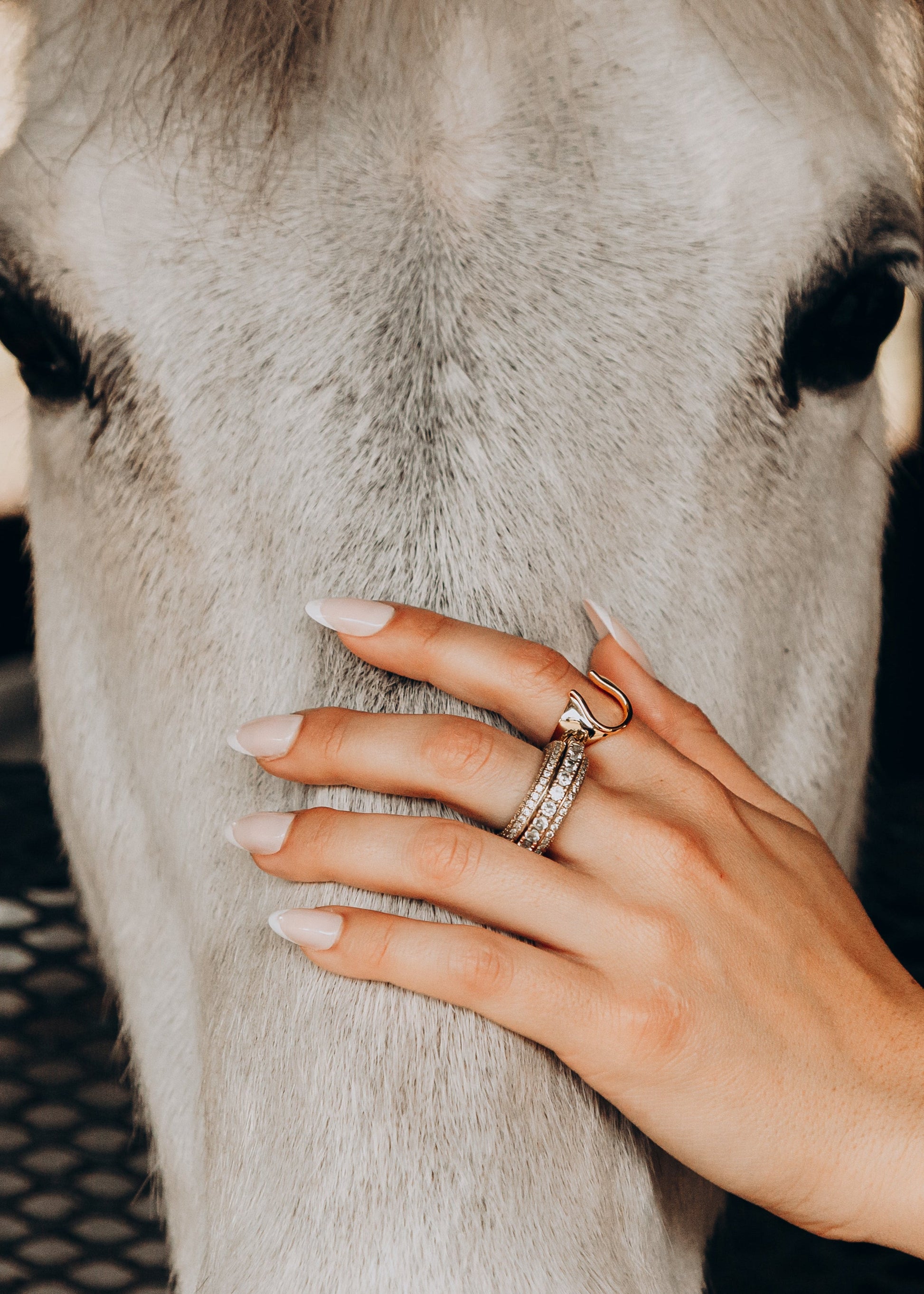 Gdzie siła spotyka się z delikatnością—Iron Grace to odważny, a zarazem wyrafinowany pierścień w kształcie podkowy, który uchwyca ducha nieustraszonej kobiecości. Z gładkimi krzywiznami i dominującą sylwetką, ten element jest stworzony dla kobiety, która prowadzi z cichą pewnością siebie i niezachwianą postawą. Noszony solo lub w stosie, jest symbolem wytrzymałości, szczęścia i dziedzictwa—zakorzeniony w tradycji, ale stworzony dla współczesnej jeźdźczyni.