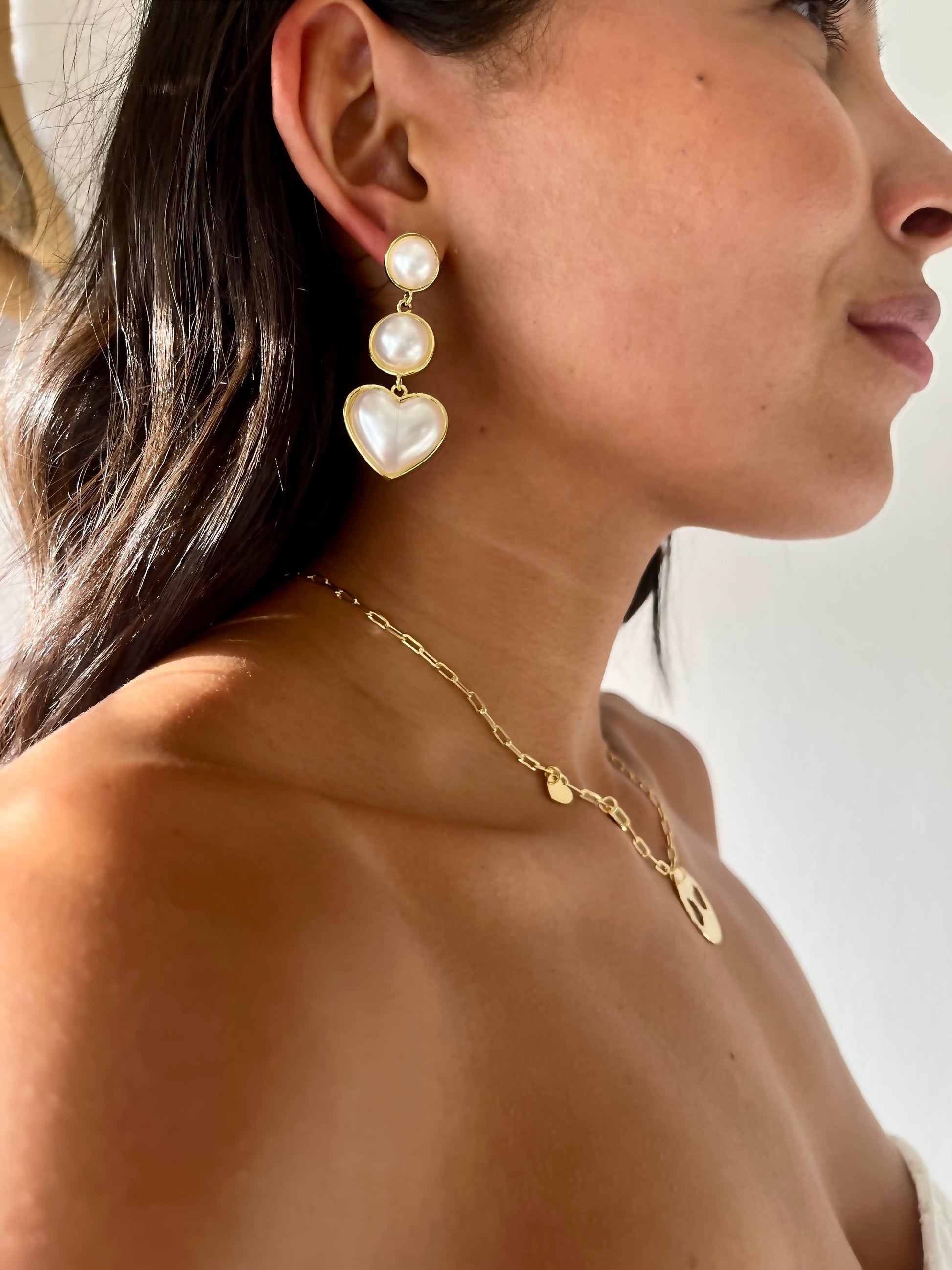 Indulge in luxurious elegance with our trendy heart dangle earrings. Crafted with hypoallergenic 18k goldfilled, these earrings offer both style and comfort. Elevate any outfit with these timeless accessories and let your sophisticated taste shine. A must-have for any fashion-forward individual.
