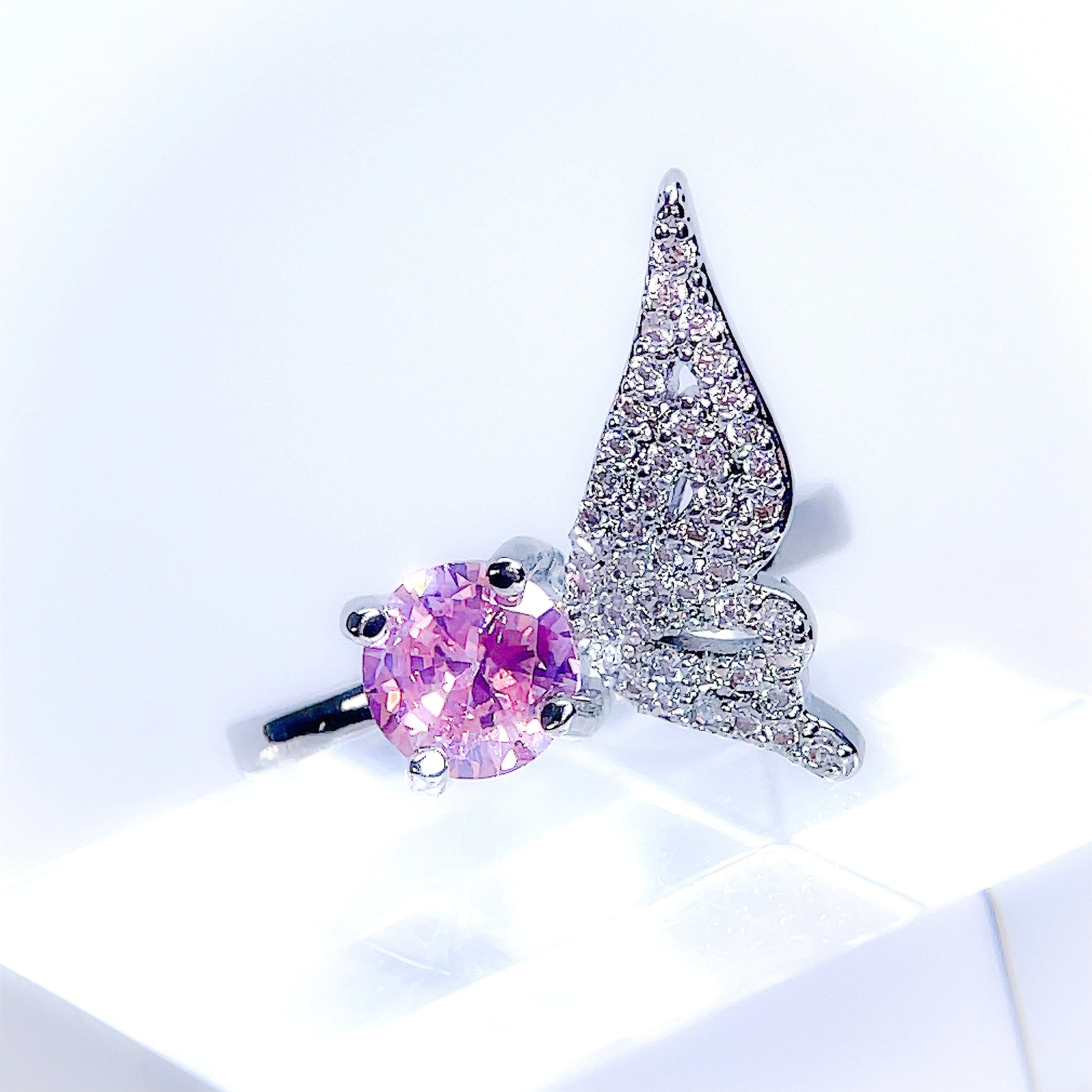 Pasujące pierścionki w kształcie połowy motyla, dostępne z różowymi i przezroczystymi kryształami. Idealny prezent dla Ciebie i Twojej najlepszej przyjaciółki! Sprzedawane osobno.