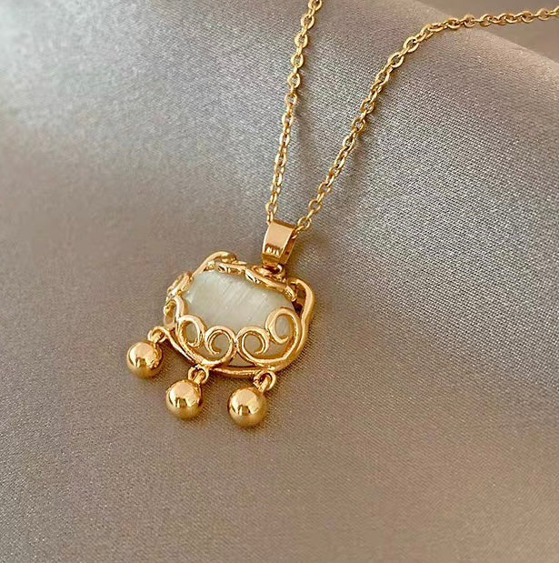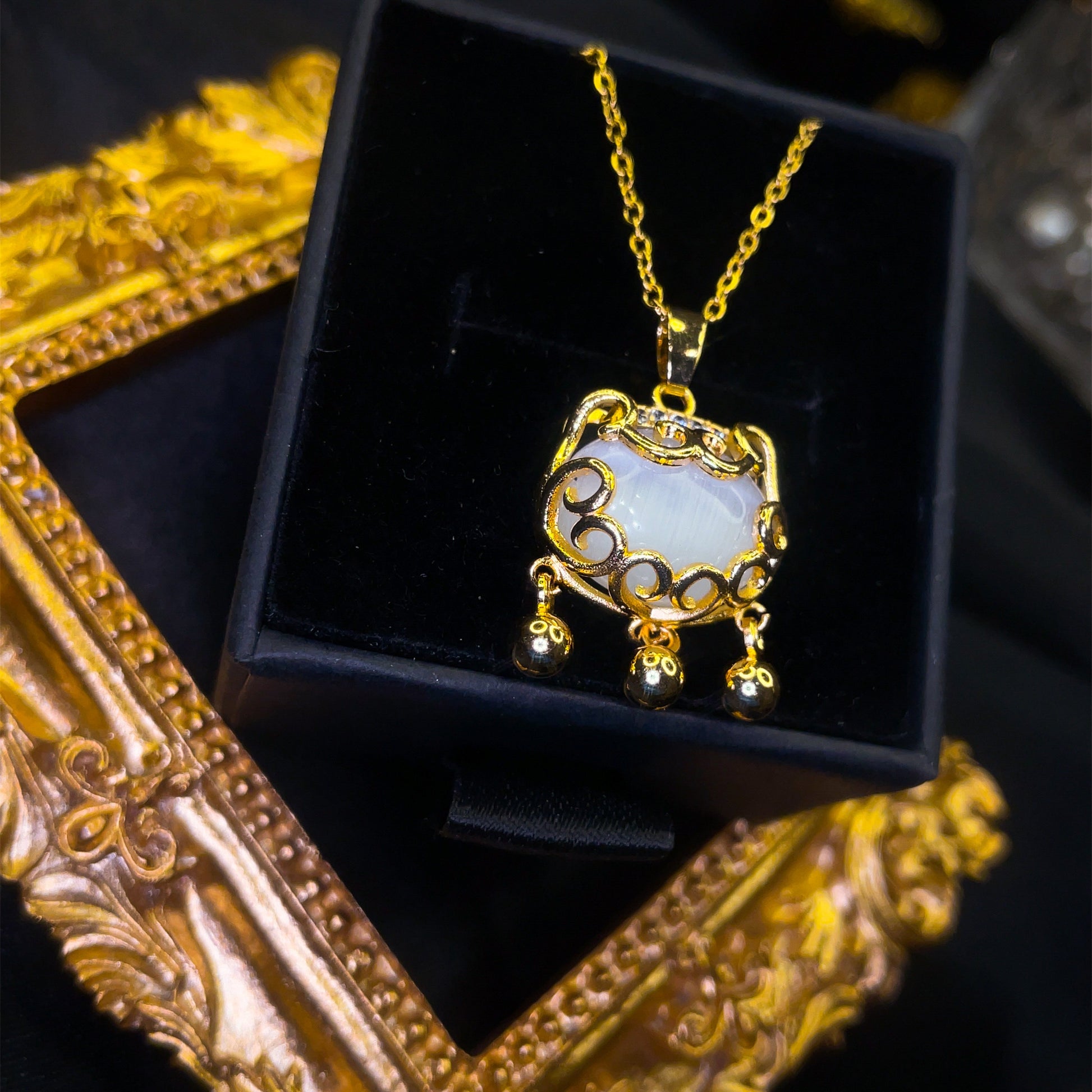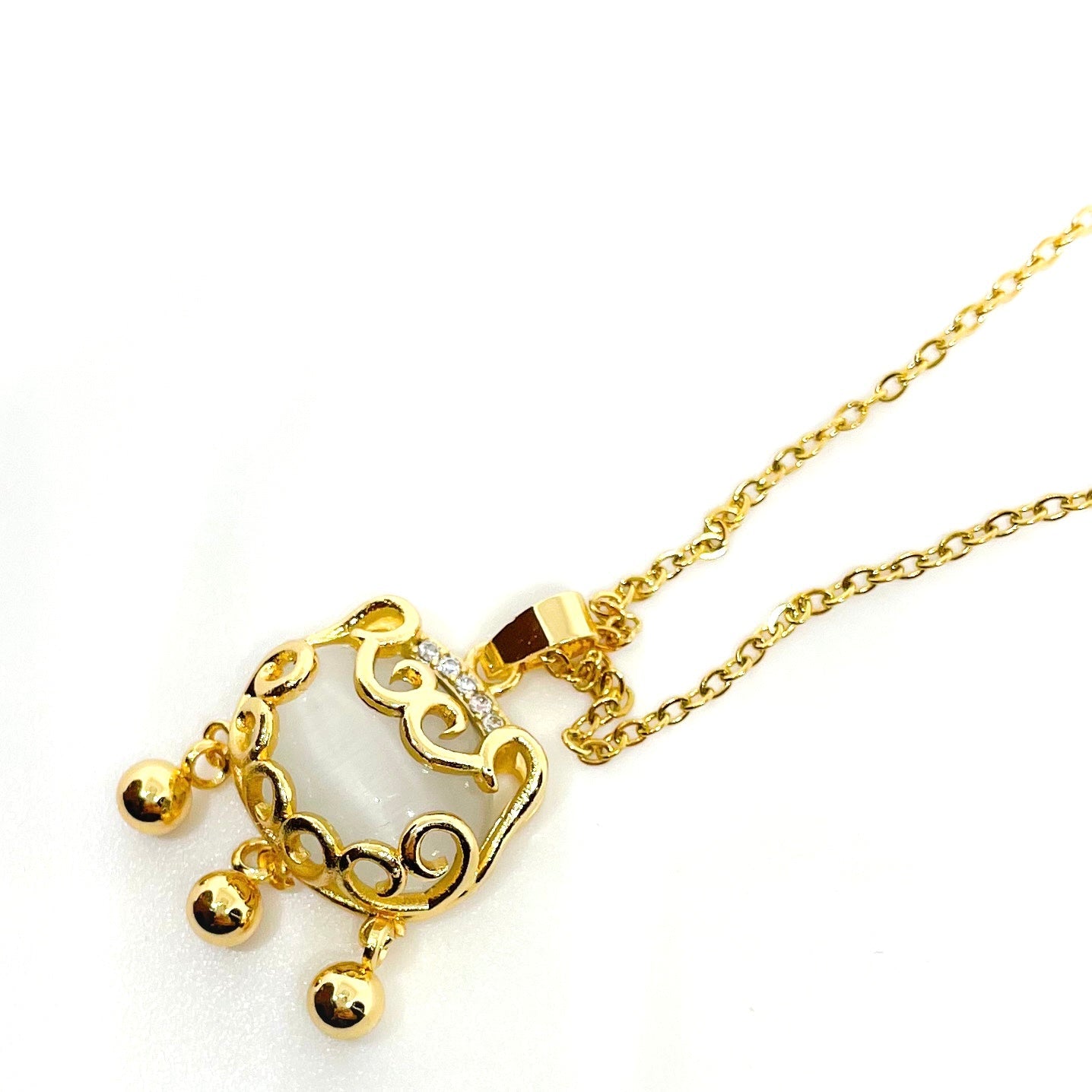 Uroczy, delikatny / minimalistyczny naszyjnik z zawieszką w kształcie kłódki z opalem typu "cat's eye" w centrum, idealny do codziennego noszenia. Prosty, elegancki i klasyczny złoty naszyjnik, który będzie pasował do Twojego codziennego stroju. Dostarczany z pudełkiem na prezent.