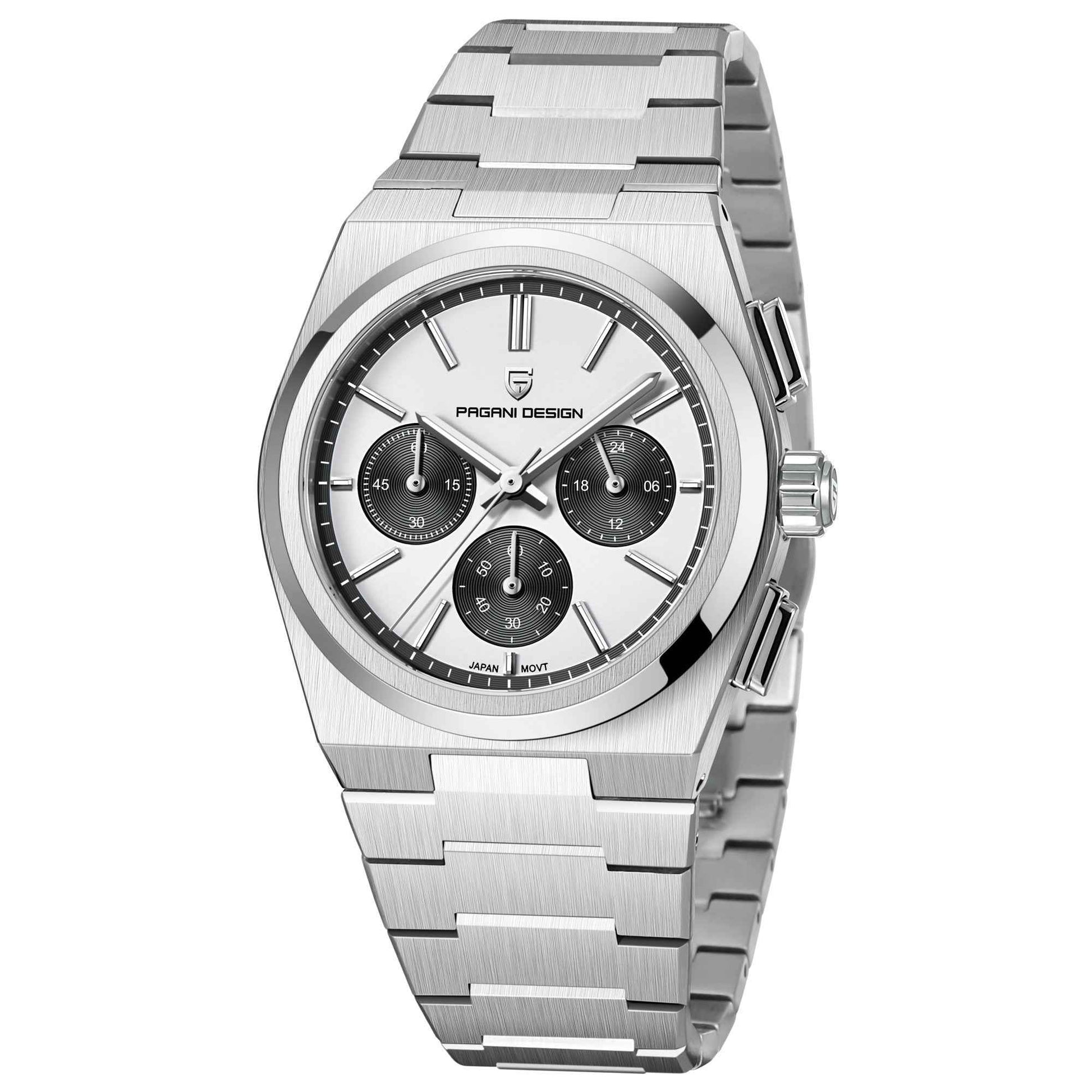 Męski niebieski zegarek chronograf - wodoodporny do 100M, szafirowe szkło, stal nierdzewna