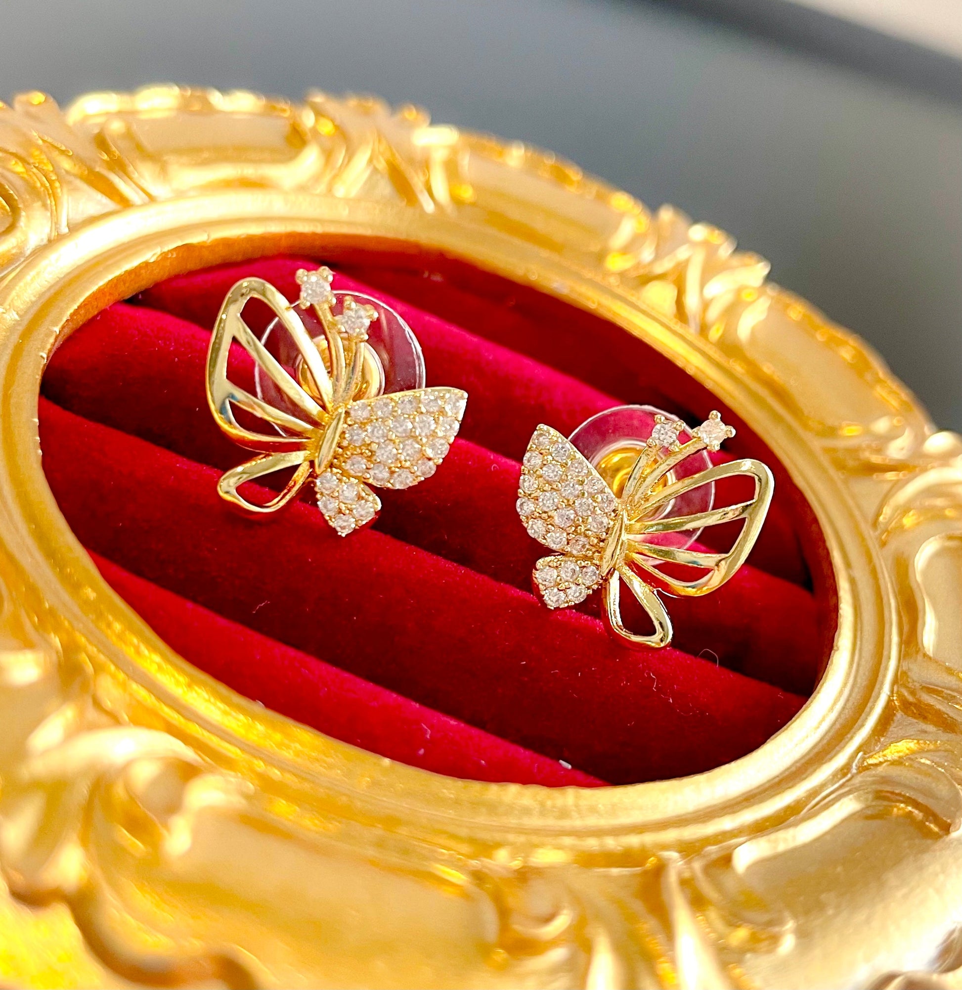 Para uroczych, delikatnych / minimalistycznych złotych kolczyków w kształcie motylków – to idealne kolczyki na co dzień! Są eleganckie, klasyczne, a jednocześnie casualowe i będą pasować do Twojego codziennego stroju.