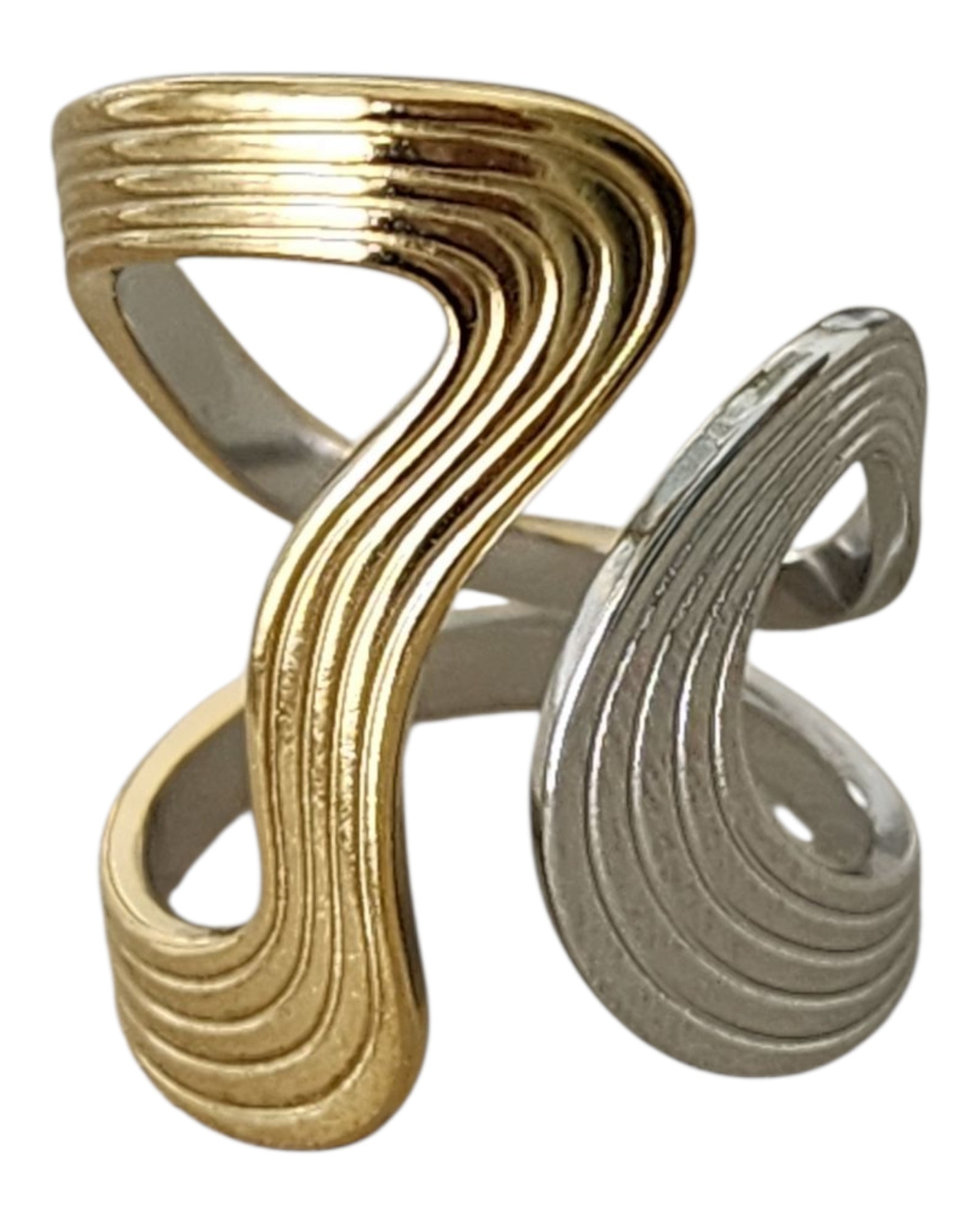 Podkreśl swój styl pierścionkiem NOVA w dwóch odcieniach, wykonanym z hipoalergicznej stali nierdzewnej 316, zapewniającym trwały komfort i wytrzymałość. Jego unikalny teksturowany wzór dodaje nowoczesnego charakteru, a regulowany rozmiar do 8 gwarantuje idealne dopasowanie. Idealny do codziennego noszenia, ten pierścionek łączy elegancję i wszechstronność bez wysiłku.