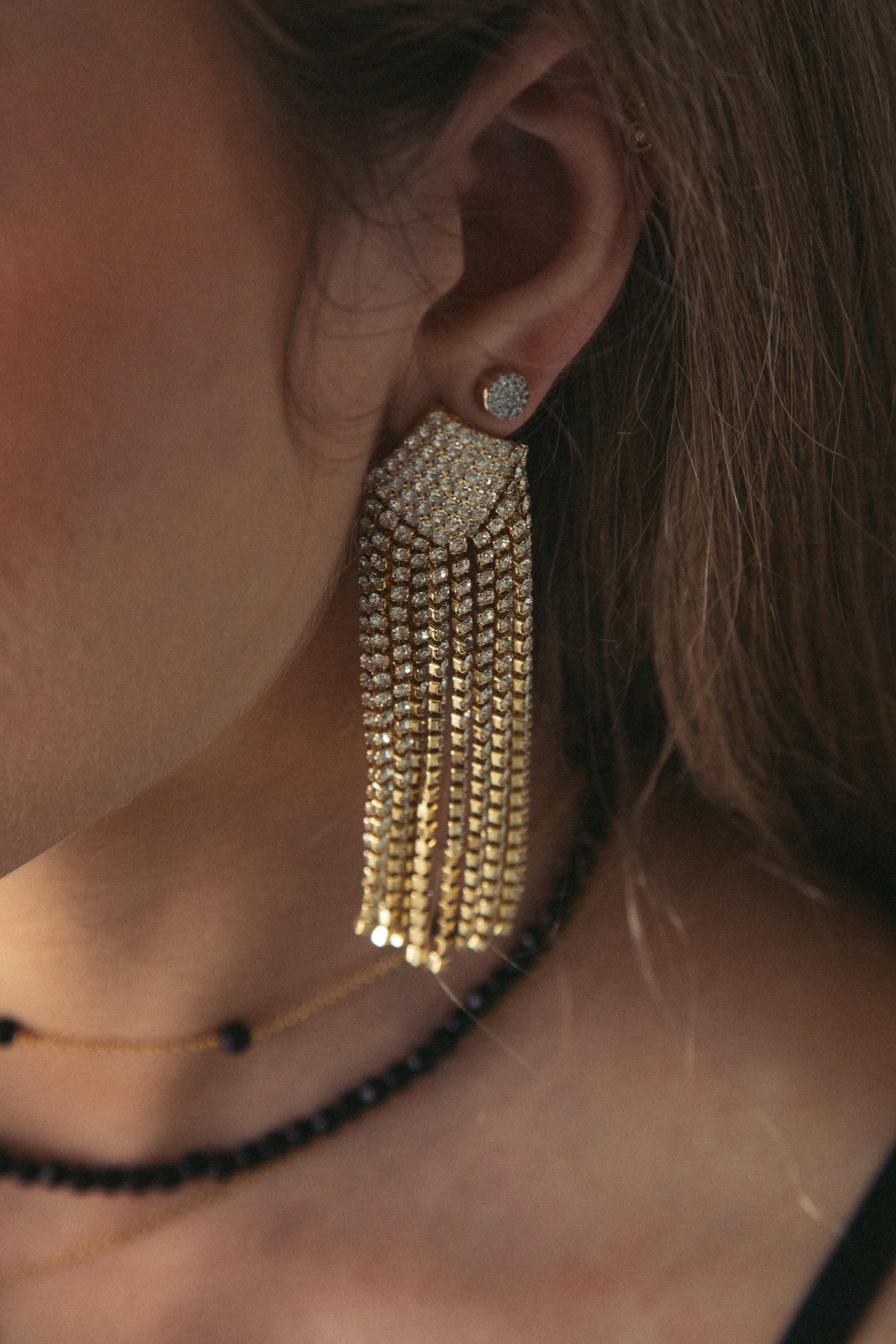 The PILAR earrings are elegant and luxurious, made from 14k goldfilled and hypoallergenic materials. Enjoy their glamorous dangle style, perfect for special occasions.
