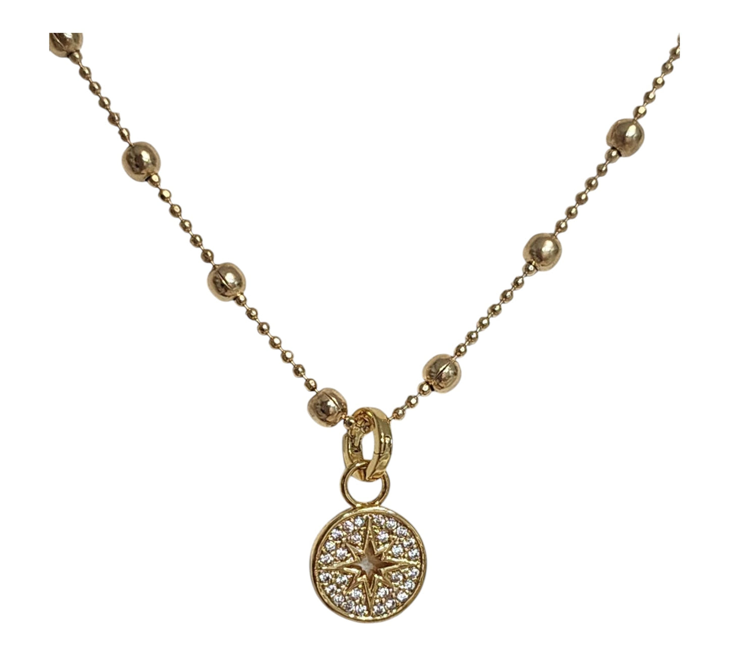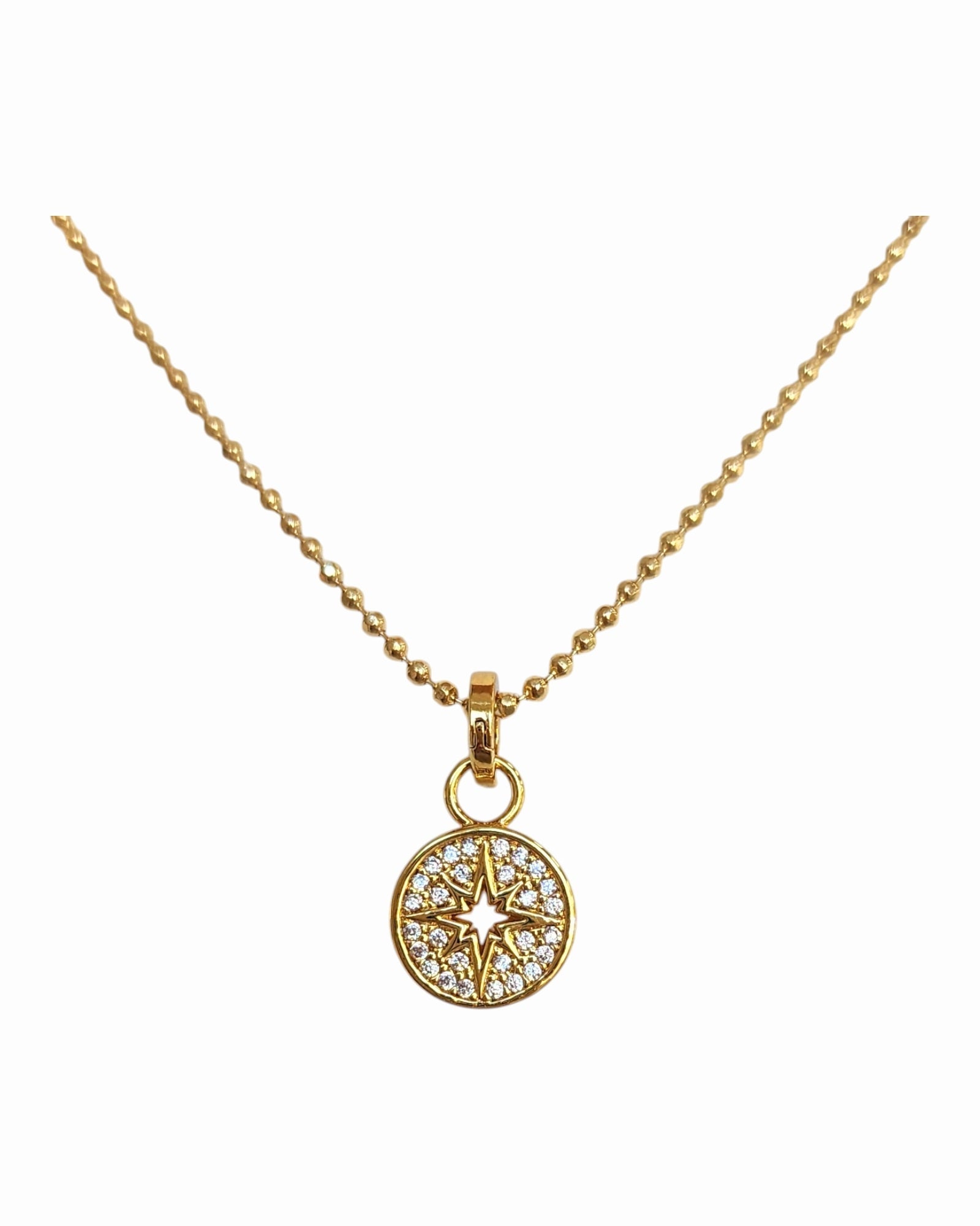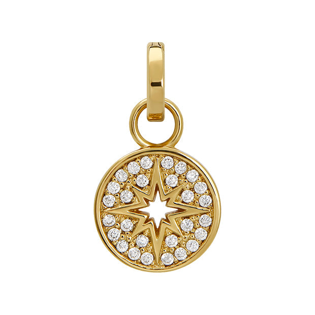 This elegant charm necklace features a sparkling starburst clip and is crafted from 925 sterling silver with an 18k gold-dipped finish. The perfect accessory for adding a touch of luxury to any outfit.