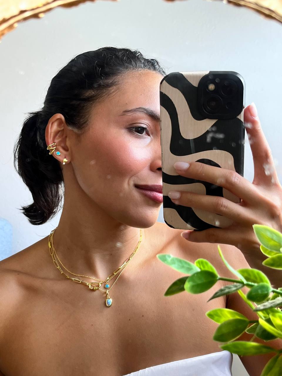 Elevate your ensemble with our exquisite 16" hypoallergenic necklace, featuring a captivating blue opal charm. Crafted with premium 18k gold filled materials, this sophisticated piece includes a 2" extension chain for versatile styling. The RIA NCK combines timeless elegance with modern sensibility, perfect for both everyday luxury and special occasions.