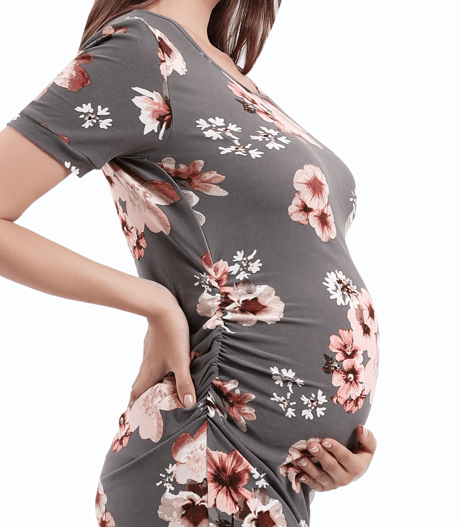 Ta dopasowana sukienka ciążowa to przylegający i stylowy wybór dla kobiet w ciąży. Sukienka wykonana jest z elastycznego materiału, który przylega do ciała, podkreślając naturalne krągłości ciążowej sylwetki i co najważniejsze zapewnia komfort. Dopasowany krój jest korzystny i kobiecy, co czyni ją świetnym wyborem na specjalne okazje lub wieczorne wyjście. Można ją wystylizować z obcasami i efektowną biżuterią lub nosić na co dzień ze sneakersami i kurtką jeansową. Ta dopasowana sukienka ciążowa to wszechstronny i stylowy wybór na każdym etapie ciąży.