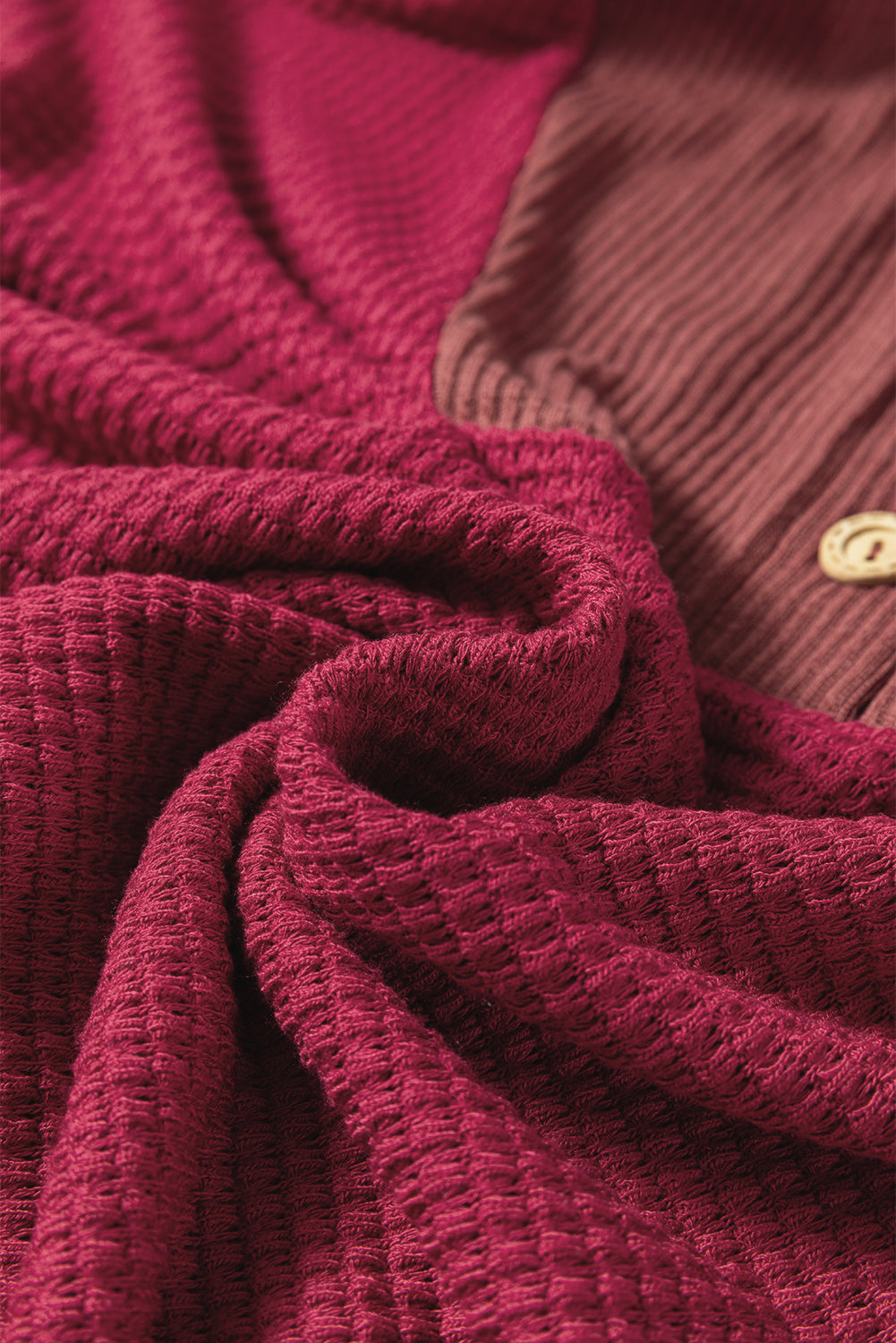 Ta góra wafelka ma modne łatki z prążkowanej tkaniny z zabawnym akcentem. Jej kaptur dodaje fajnego, swobodnego klimatu, podczas gdy zapinany na guziki przód utrzymuje styl i prostotę. Luźny krój z opuszczonymi ramionami sprawia, że jest idealna na swobodny wygląd.