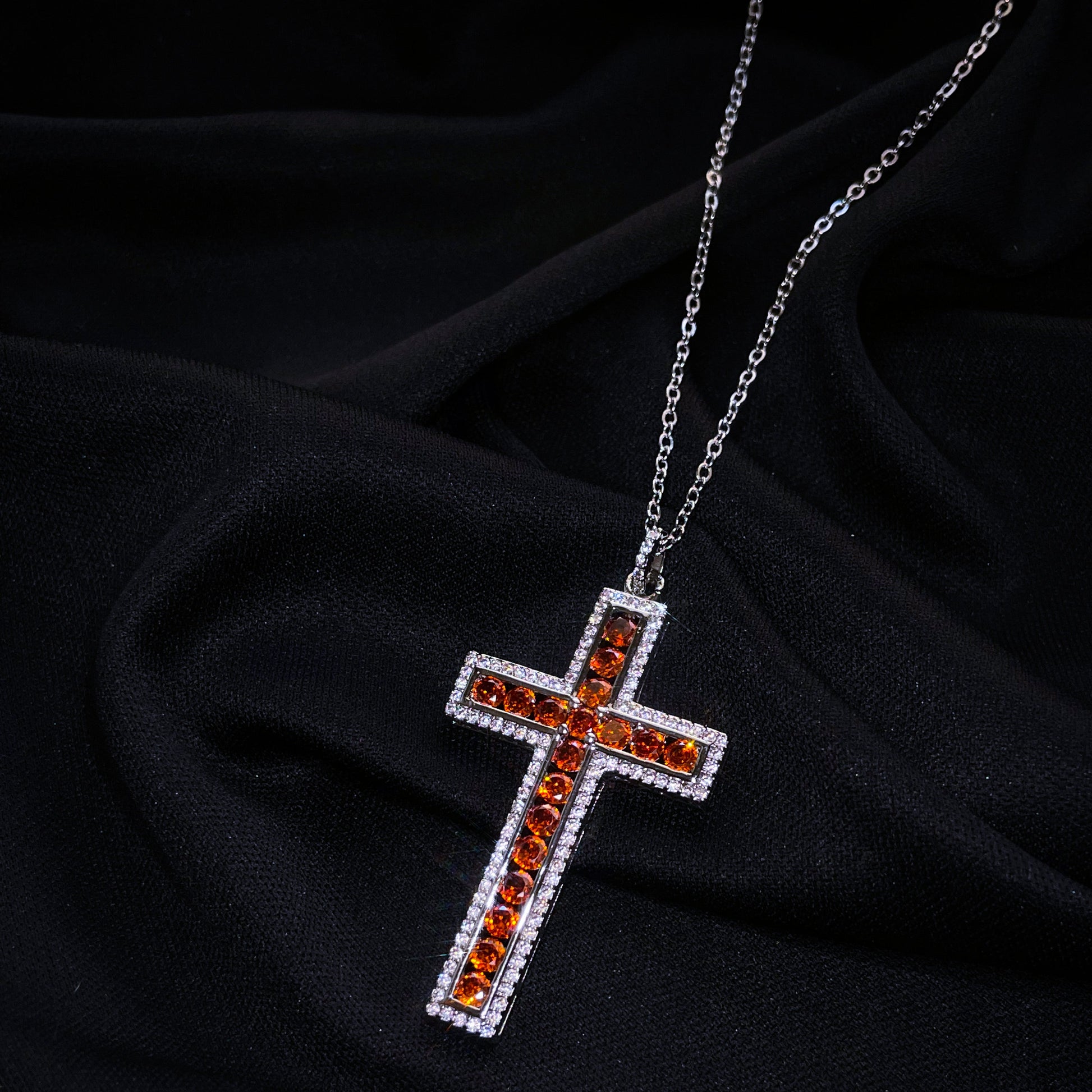 Dodaj subtelny akcent gotyckiego stylu do swojej garderoby. Ten naszyjnik z krzyżem ozdobiony jest wieloma wysokiej jakości rubinowoczerwonymi kryształami, które dają najbardziej promienne iskry.