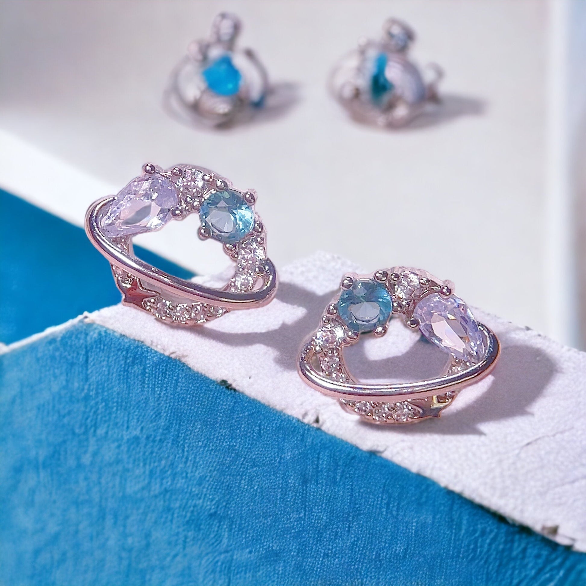 Ozdobione niebieskimi i przezroczystymi kryształami, delikatne kolczyki Silver Planet Stud Earrings są idealne na każdą okazję. Lekkie i wygodne do codziennego noszenia, ręcznie wykonane z dbałością. Idealne jako prezent lub aby dodać blasku Twojemu wyglądowi. Kup teraz i wprowadź trochę kosmicznego uroku do swojego stylu!