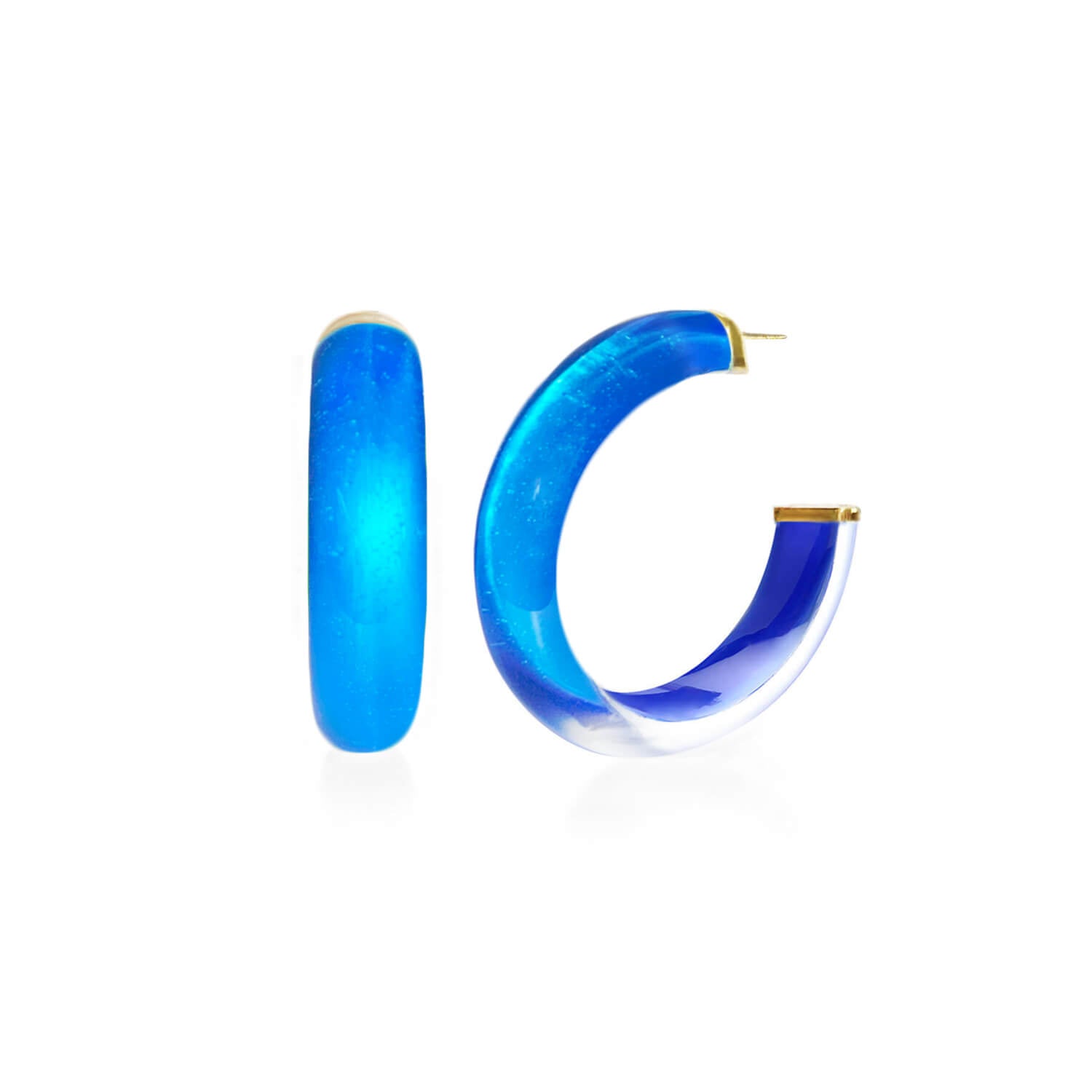 Unikalny efekt iluzji: Nowe spojrzenie na kolorowe kolczyki koła. Mają 360° widok odważnego koloru, figlarny efekt peek-a-boo z innego kąta i przezroczystość z jeszcze innego.