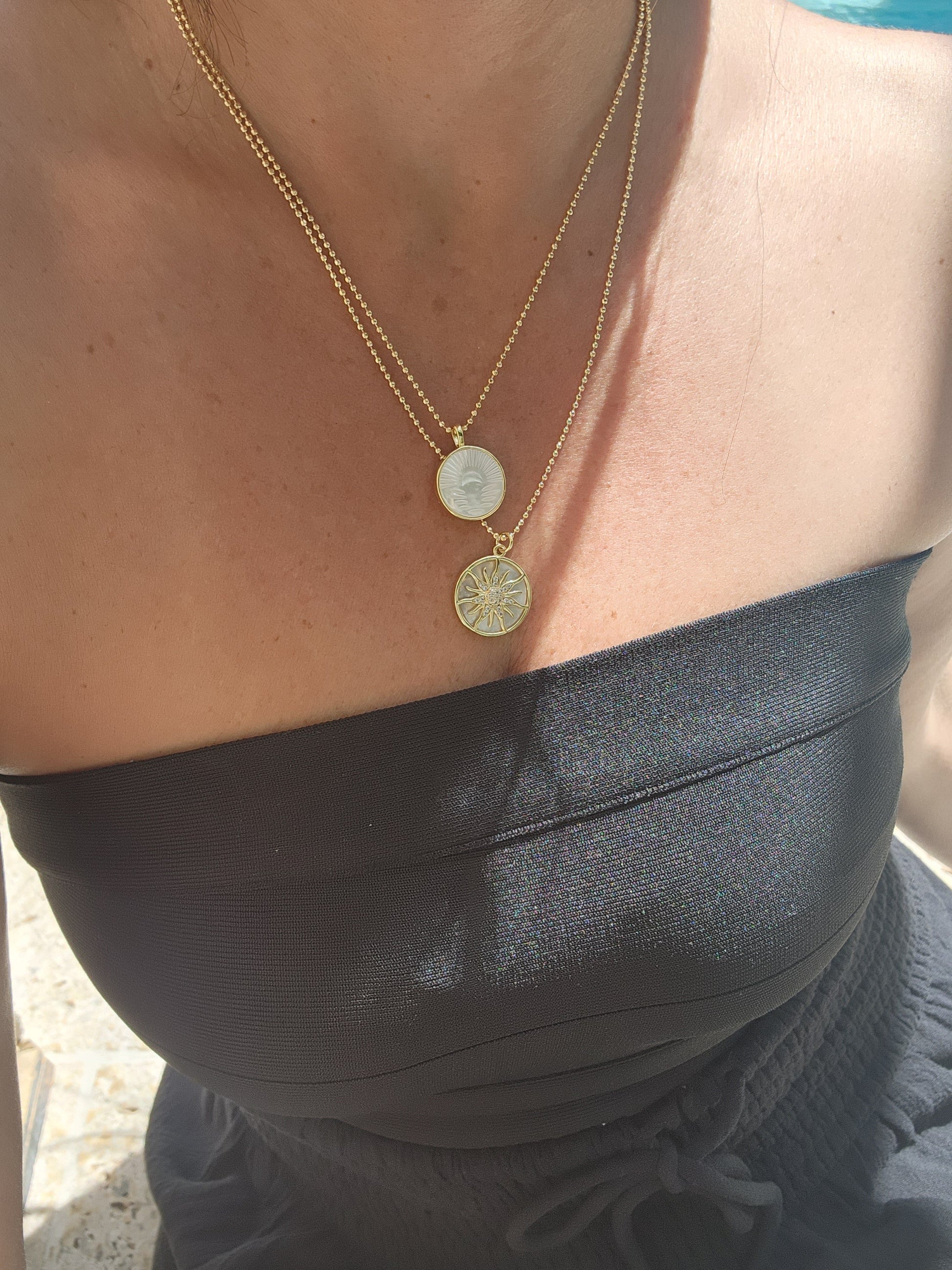 Capture the magic of a sunset with our spectacular 16" hypoallergenic 18k goldfilled charm necklace. Perfect for sensitive skin, this necklace will add a touch of glamour to any outfit. Experience the beauty of a sunset with every wear!