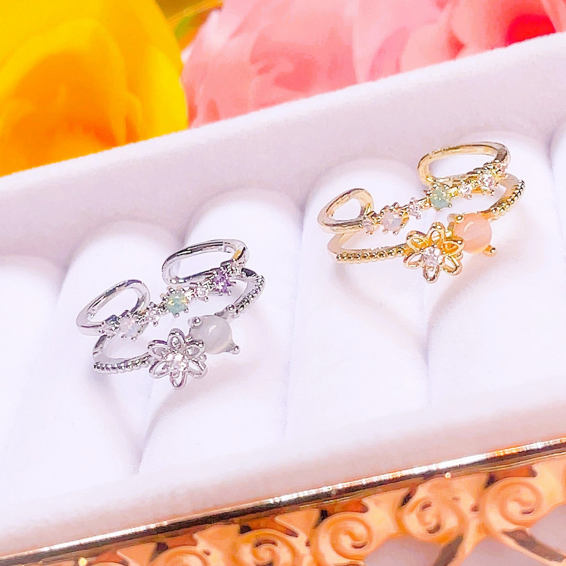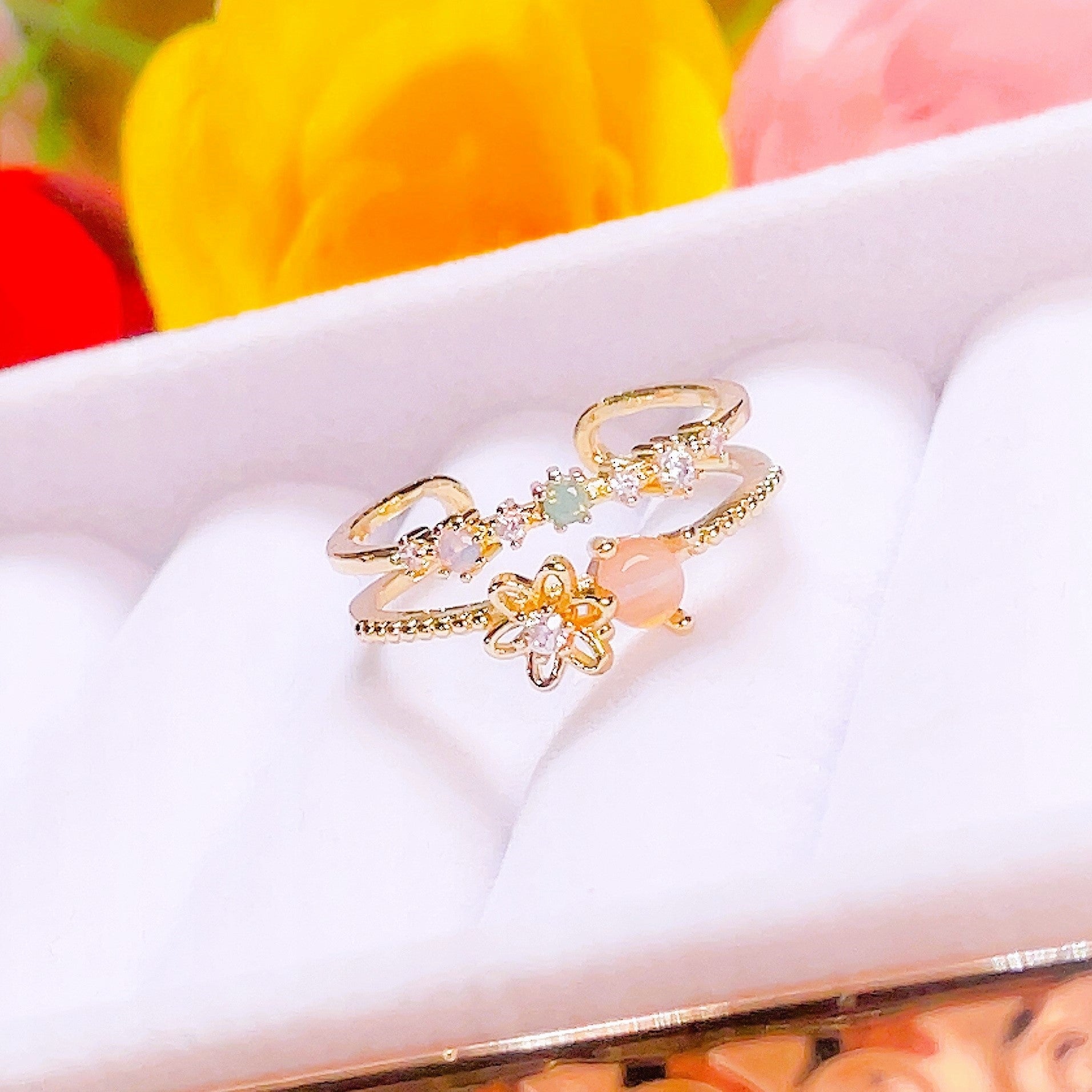 Ten pierścionek do noszenia warstwowego sprawi, że poczujesz się jaśniej niż pszczoła zapylająca kwiat! Dzięki delikatnemu, subtelnemu i uroczemu wzorowi, Sweet Garden Layered Floral Ring doda dyskretnego uroku każdej stylizacji. Idealny dla miłośników kwiatów, uroku i wszystkiego, co słodkie!