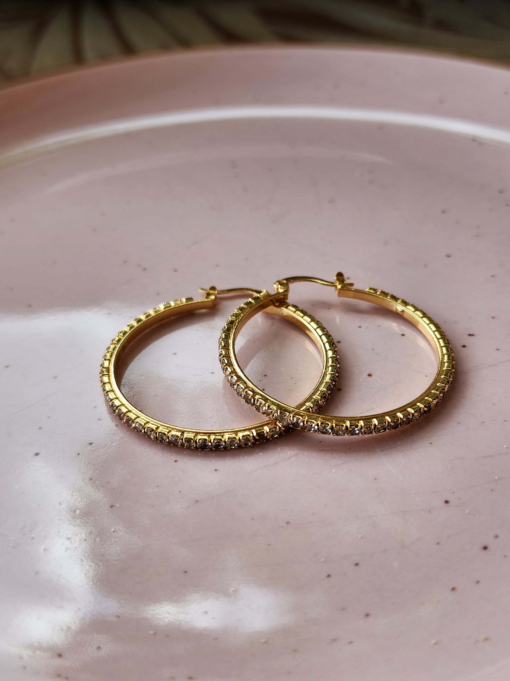 Te kolczyki TAFFY Glam Hoops mają 38mm i 40mm hipoalergiczne materiały pozłacane 14k. Idealne na specjalne okazje, te kolczyki dodadzą każdej stylizacji glamour.