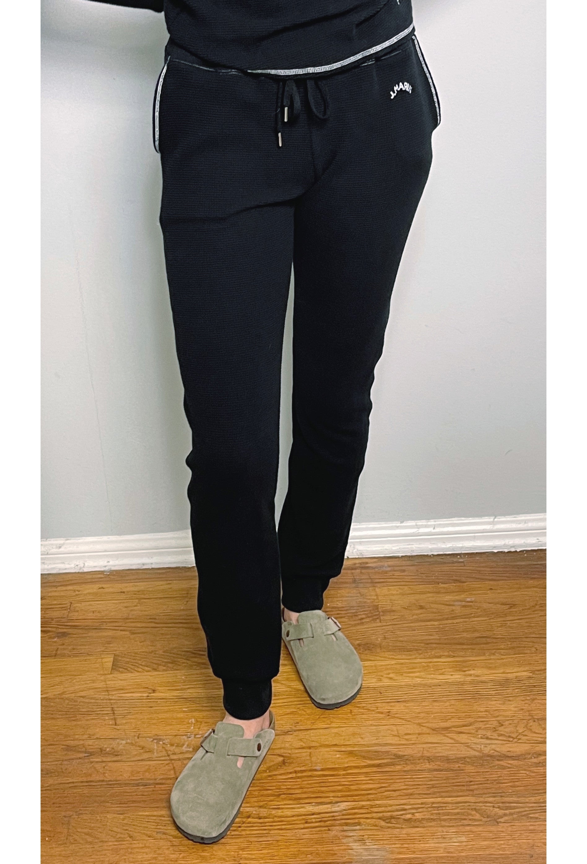 Z miękko dopasowaną, smukłą sylwetką, ściągaczem w talii, wygodnymi bocznymi kieszeniami i prążkowanymi mankietami przy kostce, podkreślają i wydłużają sylwetkę w równym stopniu. Uszyte z średniej grubości organicznej bawełny typu box thermal z lekkim dodatkiem stretchu, tkanina jest produkowana w USA i przypomina twoją ulubioną, dobrze noszoną warstwę — przytulną, oddychającą i miękką jak chmurka.