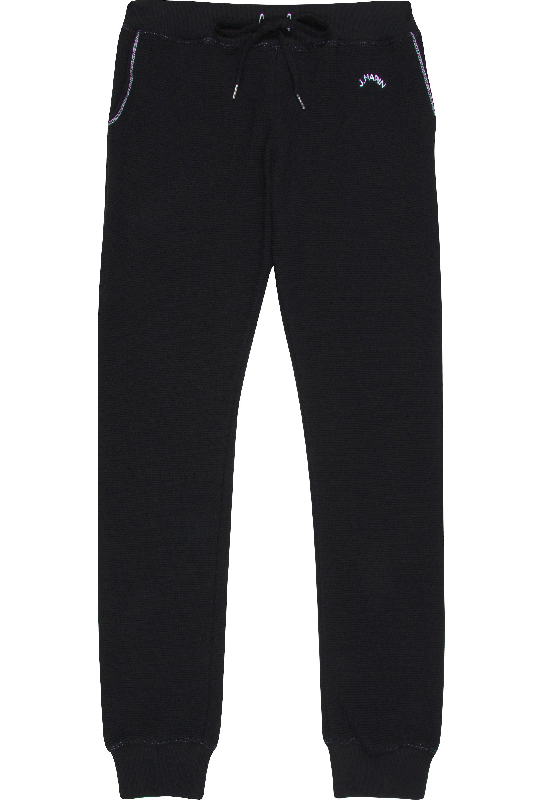 Nasze termiczne spodnie dresowe z organicznej bawełny to delikatne nawiązanie do kultowych sportowych stylów lat 80.—przeprojektowane w marzycielskim, podstawowym czarnym kolorze.