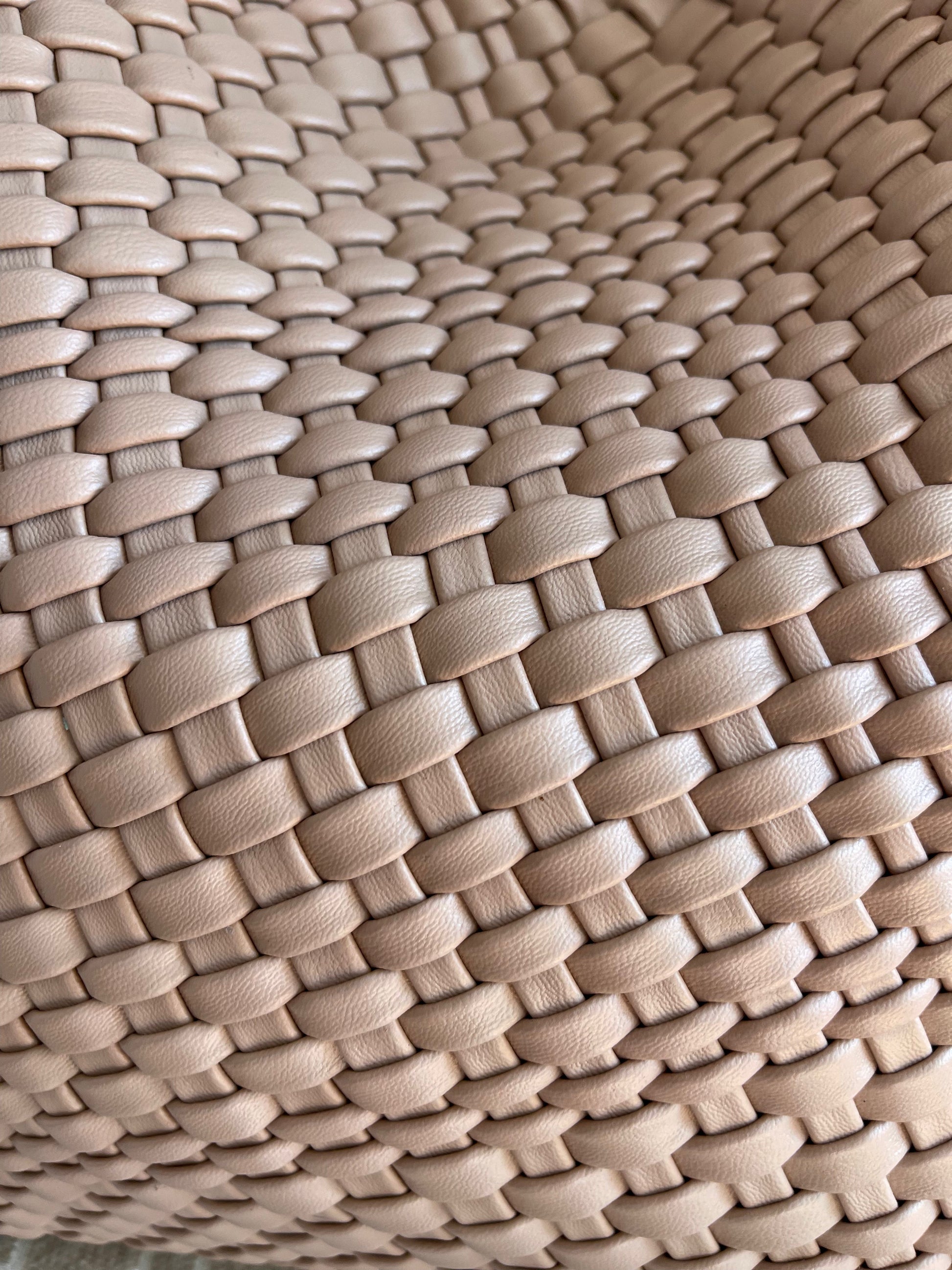 Ta oszałamiająca torebka jest naprawdę wyjątkowa, wykonana z ręcznie plecionego wegańskiego skóropodobnego materiału, który jest zarówno trwały, jak i stylowy. Skóra jest miękka w dotyku, a jednocześnie na tyle wytrzymała, by sprostać codziennemu użytkowaniu. Misterny wzór plecionki dodaje torbie tekstury i głębi, czyniąc ją prawdziwym elementem wyróżniającym.