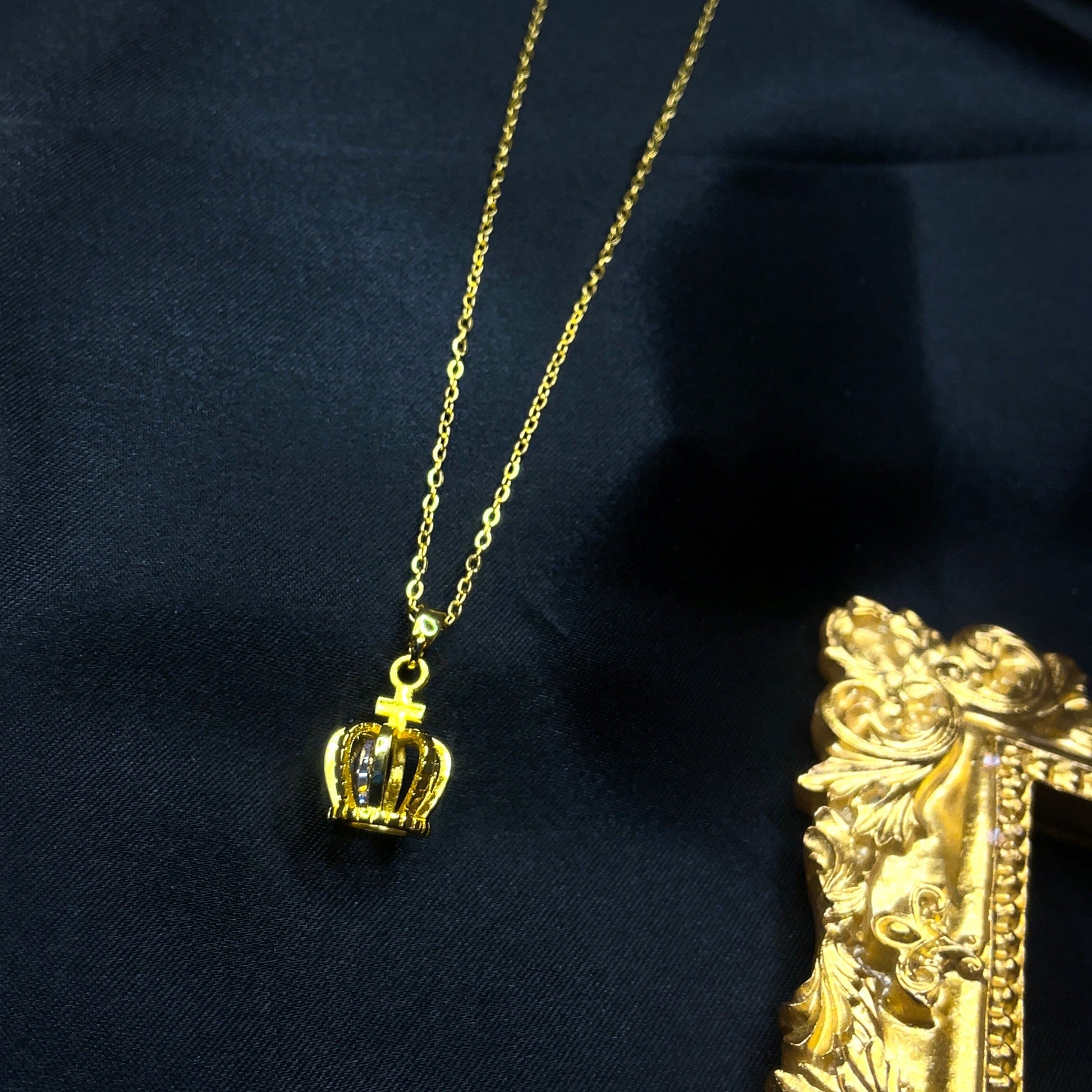 Uroczy, delikatny / minimalistyczny złoty naszyjnik z koroną, idealny do codziennego noszenia. Prosty, elegancki i klasyczny złoty naszyjnik z kryształem, który będzie pasował do Twojego codziennego stroju. Dostarczany z pudełkiem na prezent.