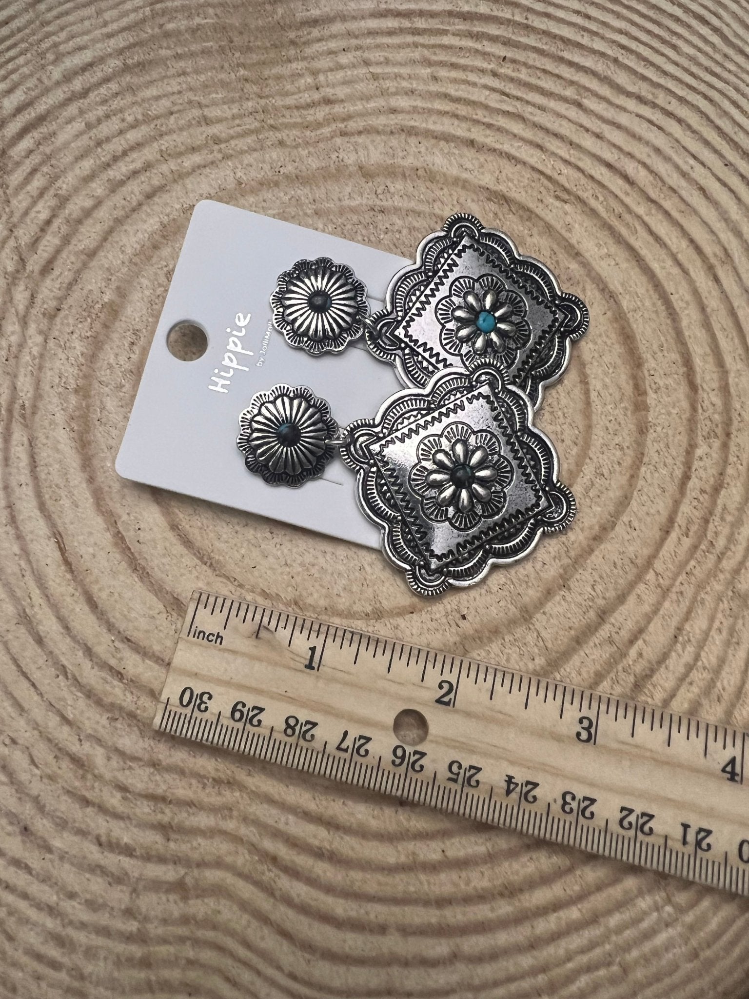 Kolczyki wiszące Western Concho z wielokolorowymi kamieniami - 2 1/2 cala długości
