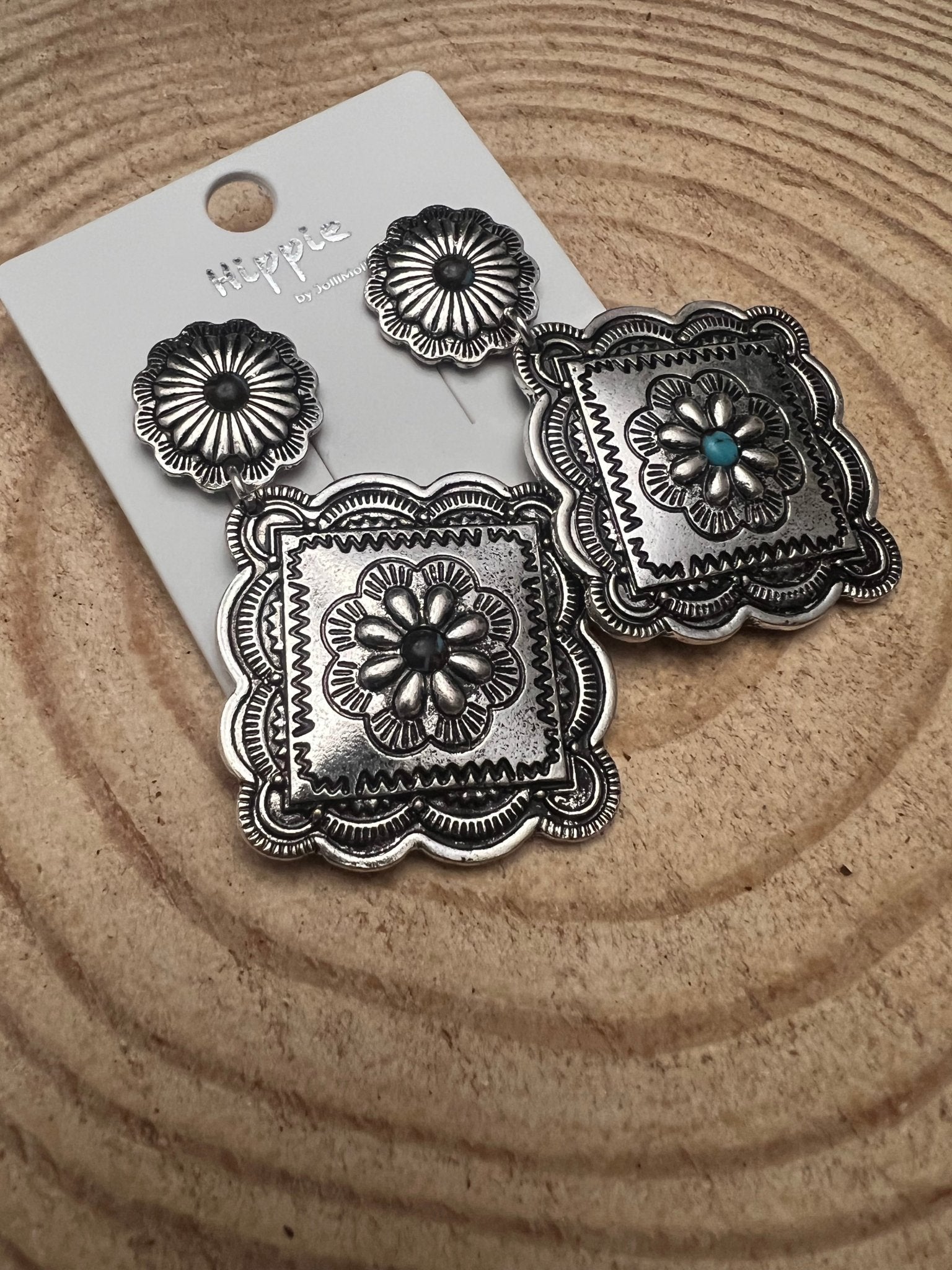 Kolczyki wiszące Western Concho z wielokolorowymi kamieniami