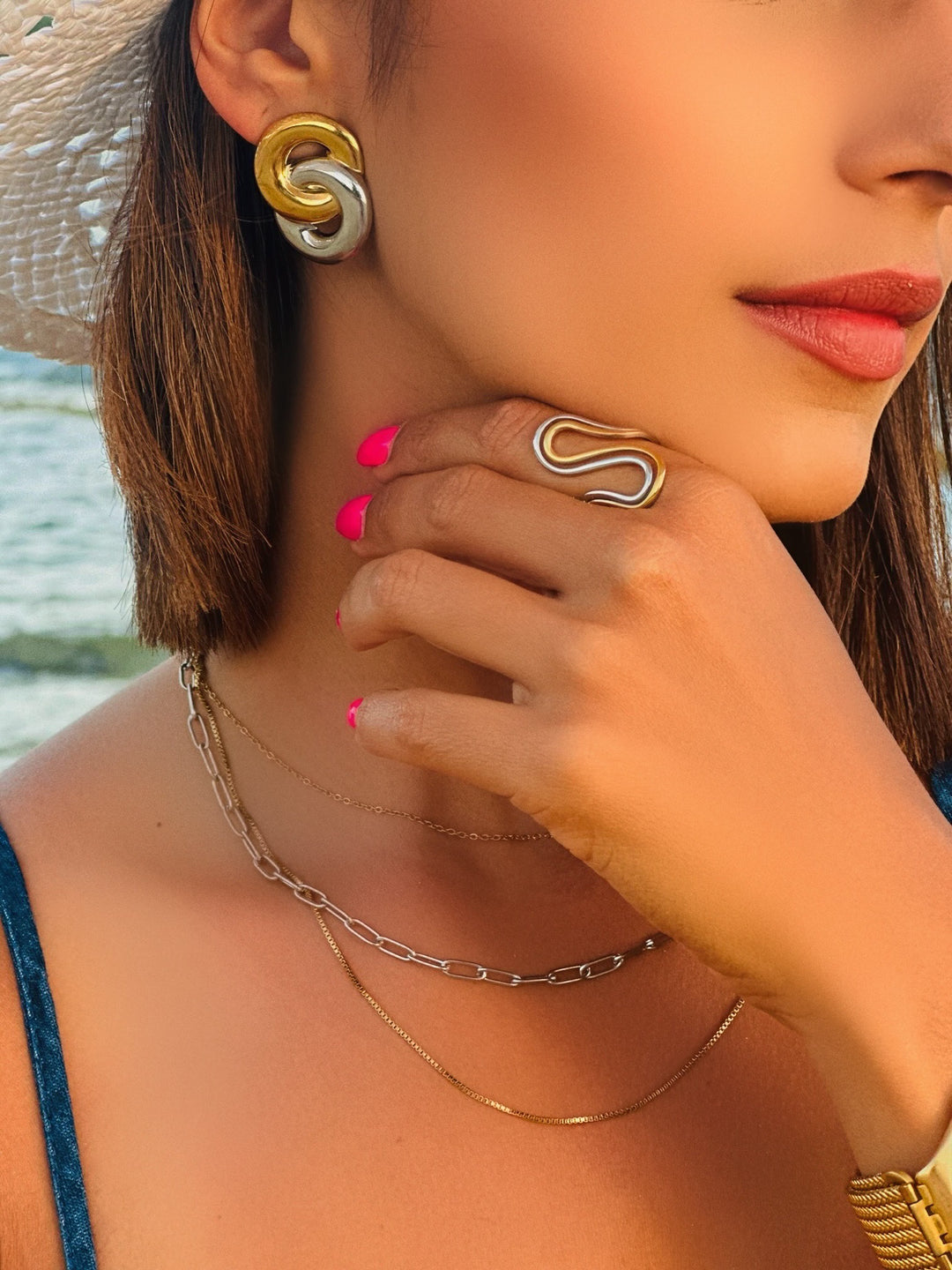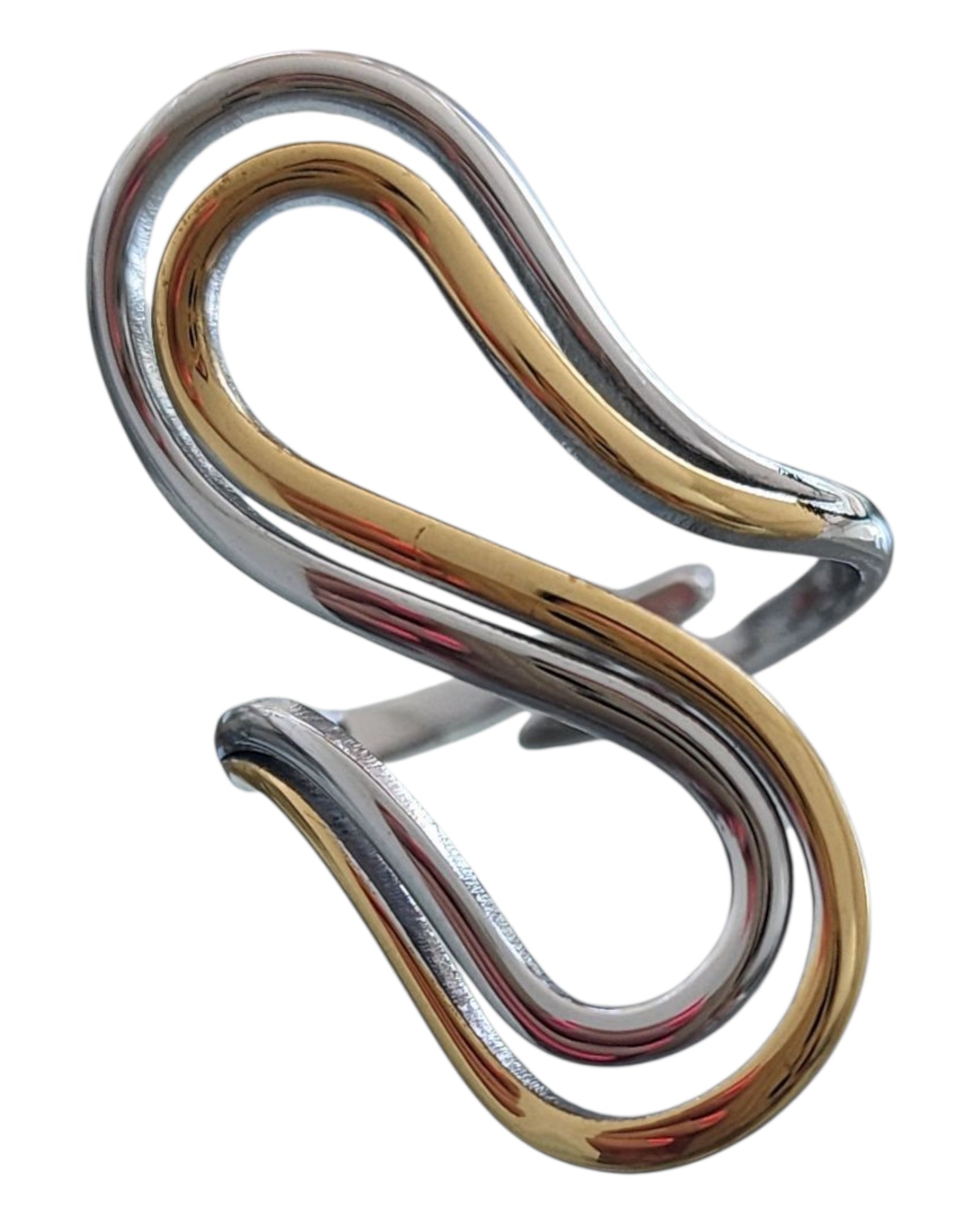 Elegantly crafted, the ZAYA open ring features a sophisticated two-tone design in premium 316 stainless steel. This hypoallergenic piece offers both refined style and comfort for sensitive skin, making it a versatile addition to your jewelry collection that transitions seamlessly from day to evening wear.