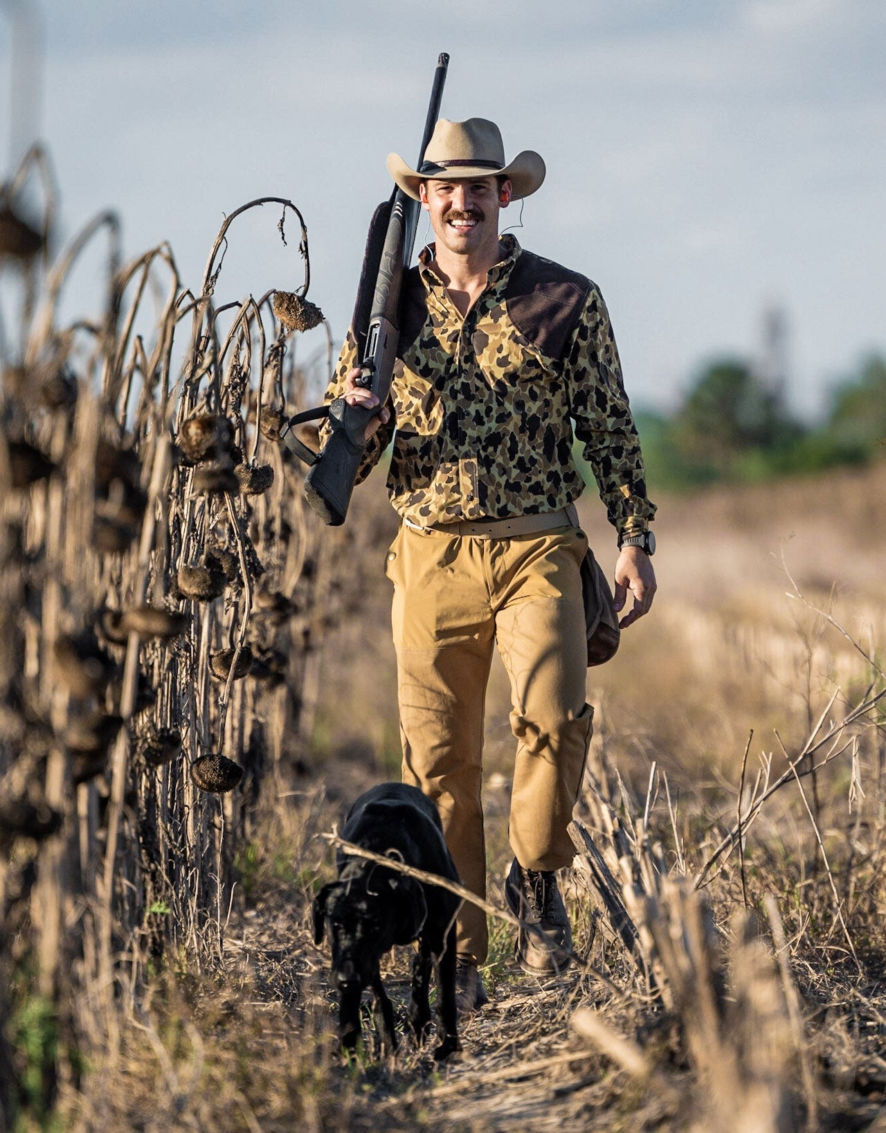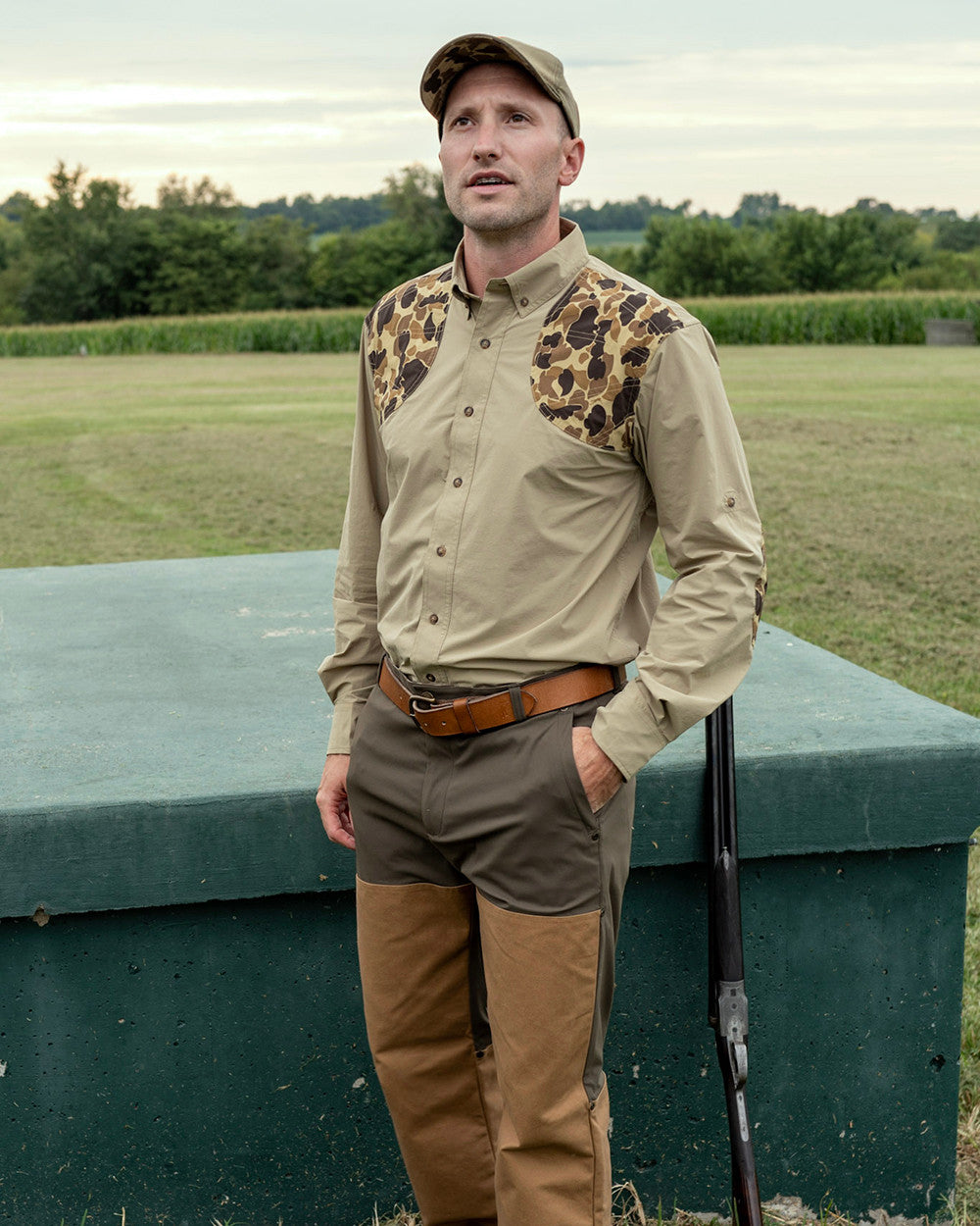 As an avid bird hunter who's ended far too many days afield with cuts and scratches on my legs due to low quality brush pants. I wanted to create the best on the market. Our original field pant features our 12.29oz military duck canvas combined with reinforced waxed cotton panels in the most exposed sections of the pant. After having the opportunity to join some friends on Quail hunts in Arizona and Texas it became clear that in hotter climates, or on hunts where many miles were covered on foot, it was worth trading some of the ballistic strength for flexibility and breathability. That's where the idea for the Active+ Field Pants came from - the perfect blend of comfort and performance while still retaining best-in-class abrasion and puncture resistance in key areas. These pants have been field tested in the cactus and thorn rich environments of southern Arizona and have proven their ability to protect from cuts and scrapes while still being flexible and breathable. The reinforced areas of the pants use the same 12.29oz military duck canvas which is incredibly strong and the base of the pants is a stretch/breathable fabric.