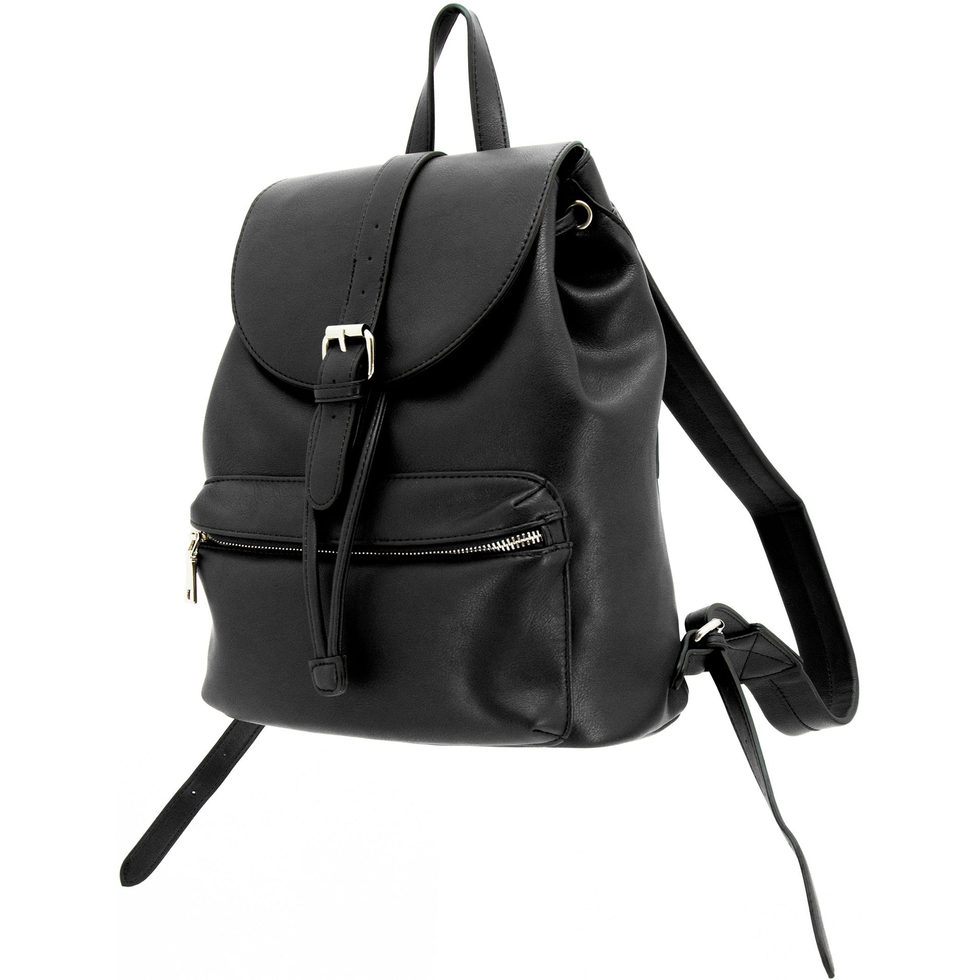 - Exterior faux buckle strap with magnetic snap closure