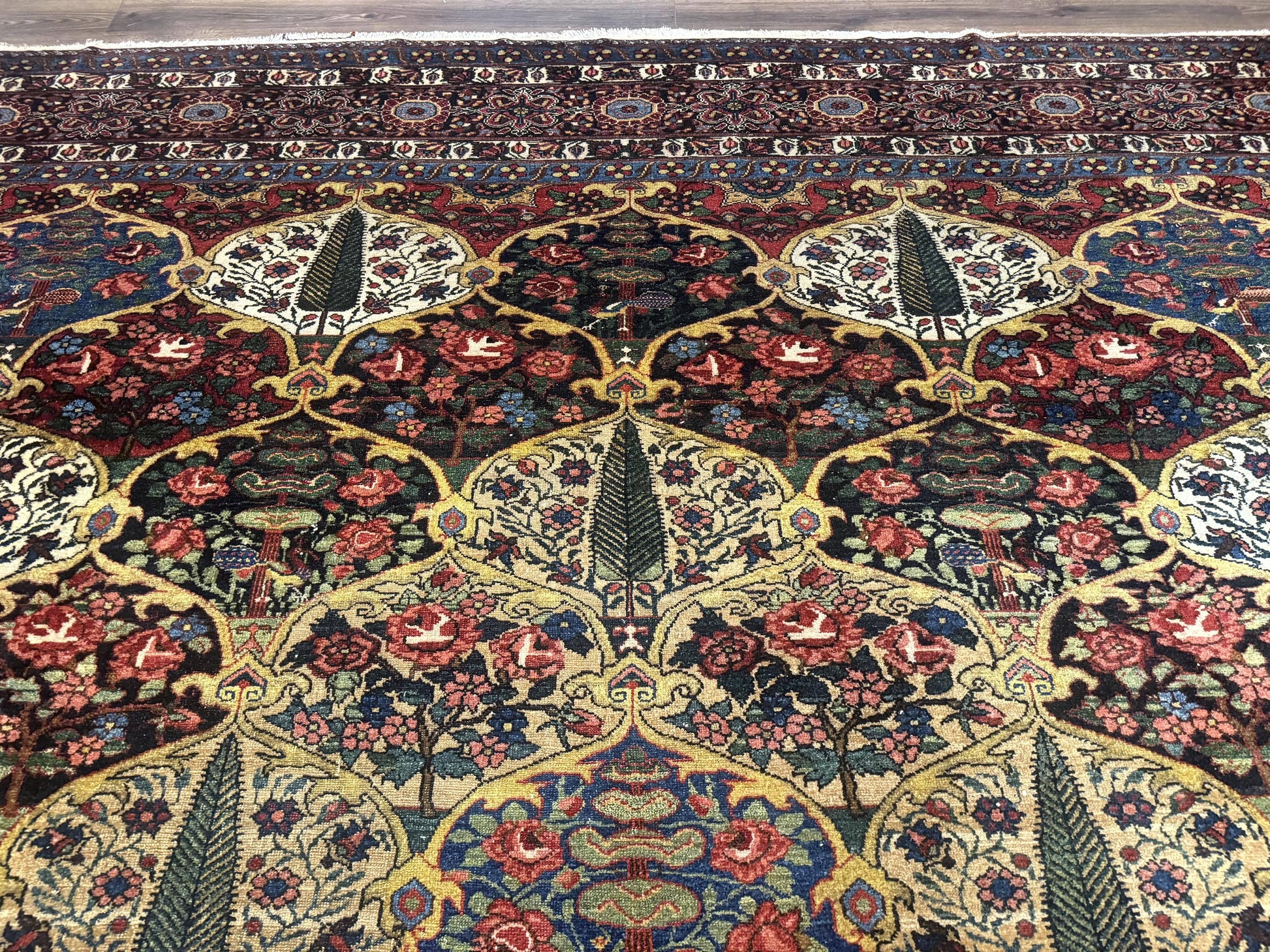 Antique Persian Bakhtiari Rug 12x19, Palace Size Wool Handmade Persian Carpet, Oversized Rug, Panel Design, Peacocks, Multicolor, Rare
