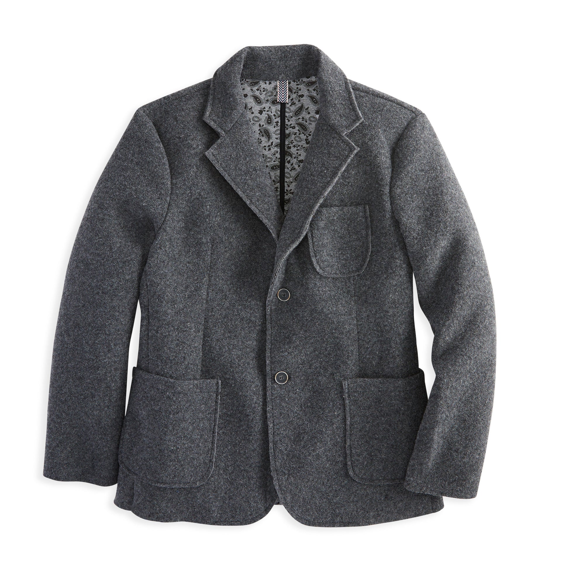 This sophisticated blazer is crafted to make a classy and stylish statement and tailored for an elegant fit. With two buttons, three sewn-on patch pockets, and a paisley lining, it's a perfect choice for any occasion, versatile enough to be paired with a jean or a more formal trouser.