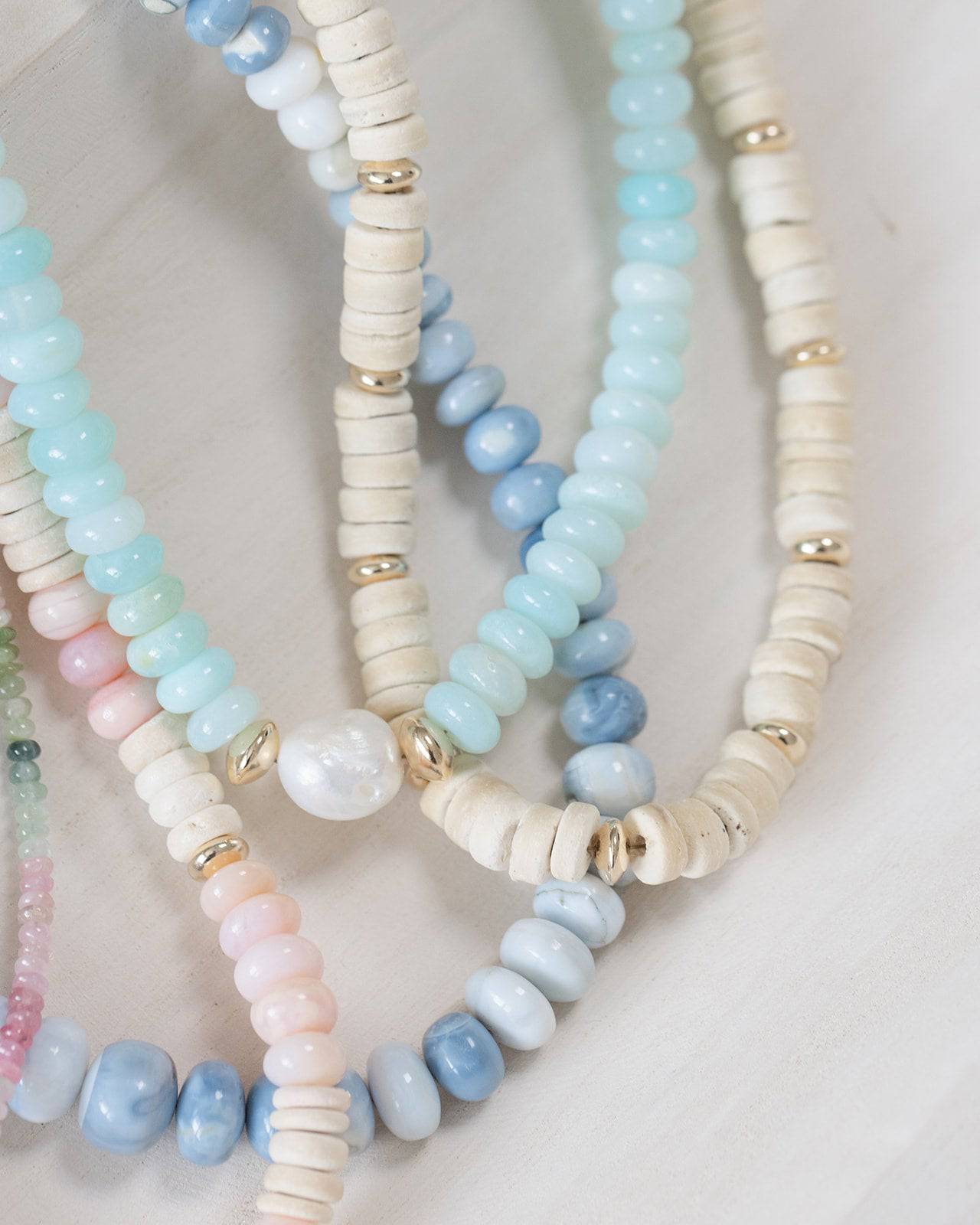 Our Capri necklace features stunning opal beads & a fresh water pearl with 14k gold vermeil hardware. Elevate your style with this beautiful and versatile piece.