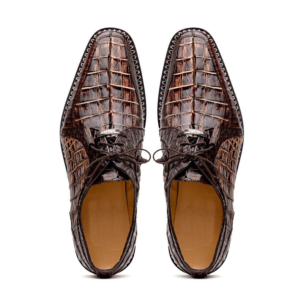 The CARIBE is our stunning genuine hornback caiman crocodile dress derby's featuring a 3D crocodile scale toe box, tasseled laces, stitched outsole, and a polished hand finish that makes the crocodile texture pop. Dress these up with your favorite jeans or slacks for an out-of-this-world look.